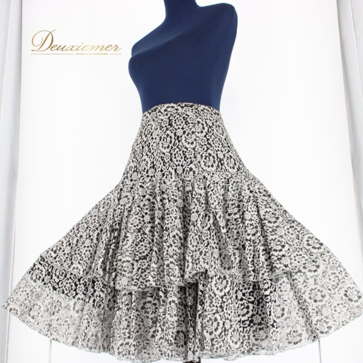 社交ダンス 衣装 スタンダード スカート レッスンウェア 女性用 レディース オールシーズン 黒 ブラック系 花柄 レース シック ホワイト系 かわいい デザイン おしゃれ 大人用 フォーマル ダンスウェア 踊りやすい 着心地 楽な丈感 高品質 日本製 パーティー用 結婚式用 年中使える ファスナー仕様