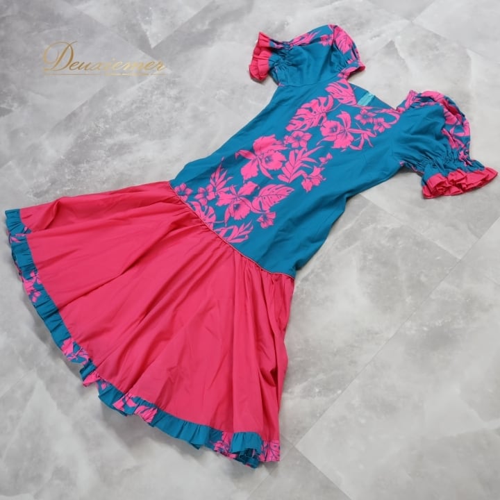 #フラダンス #フラダンス衣装 #衣装 #ドレス #ワンピース #ブルー #ピンク #かわいい #フリル #ファスナー #女性用 #ダンス #パーティー #イベント #楽しい #花柄 #ハワイアン #オフショルダー #秋冬 #ENUTSU