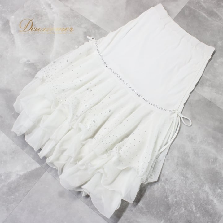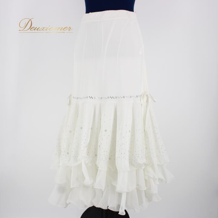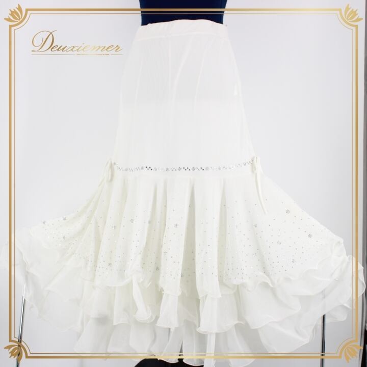 社交ダンス 衣装 スタンダード スカート レッスンウェア 女性用 レディース オールシーズン ホワイト系 白 ACROSS ラインストーン 練習着 スカート レディース ウエストゴム ラインストーン ホワイト オールシーズン 伸縮性 ポリエステル 練習着 社交ダンス用品 ダンスウェア フリル シフォン スカート丈約81cm アクセサリー付き パーティー ステージ衣装