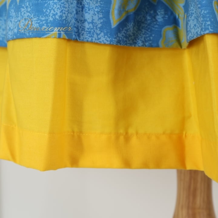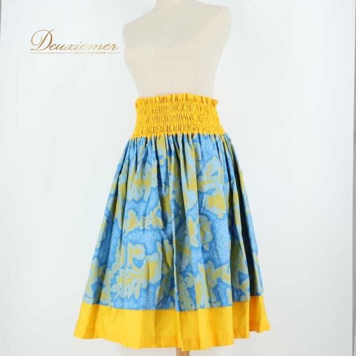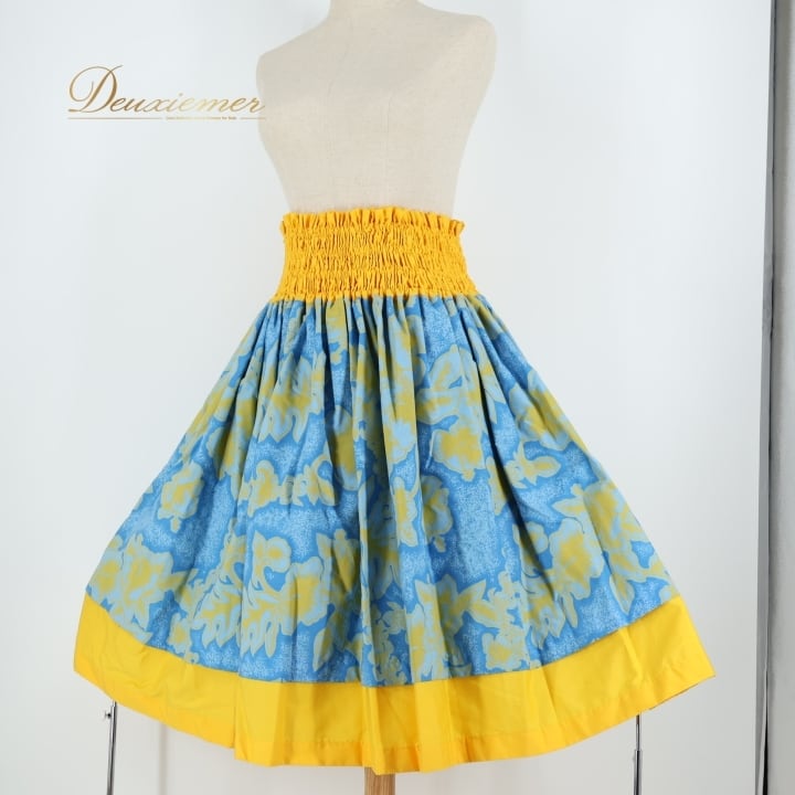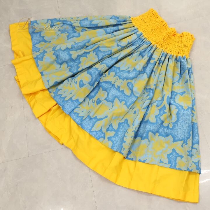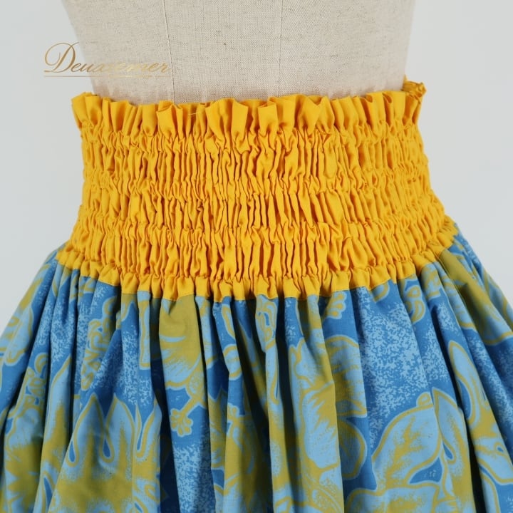 #フラダンス #パウスカート #ハワイアンプリント #ブルー #イエロー #衣装 #ダンス衣装 #フラダンス衣装 #ウエストゴム #かわいい #さわやか #おしゃれ #夏コーデ #コスチューム #トロピカル #リゾートファッション #ハワイ #ダンス #女性用トルソー #ENUTSU