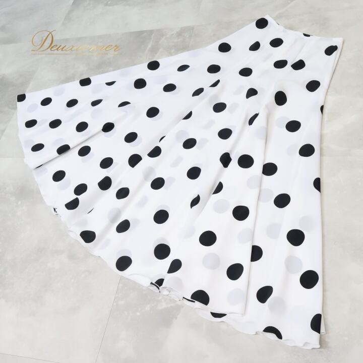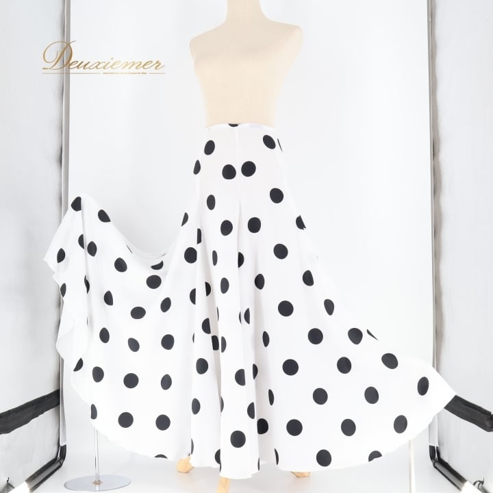フラメンコ 衣装 ファルダ スカート ペチコート エルモサ HERMOSA レッスン 練習着 水玉 ドット 軽い 薄い 白 黒 ホワイト系 ブラック系 ふんわり 薄手 スカート レッスン着 フラメンコ用 おしゃれ エレガント コスチューム 発表会 練習用 フェミニン ダンス衣装 モノクロスタイル
