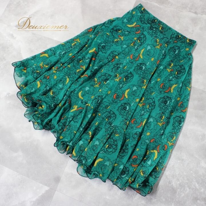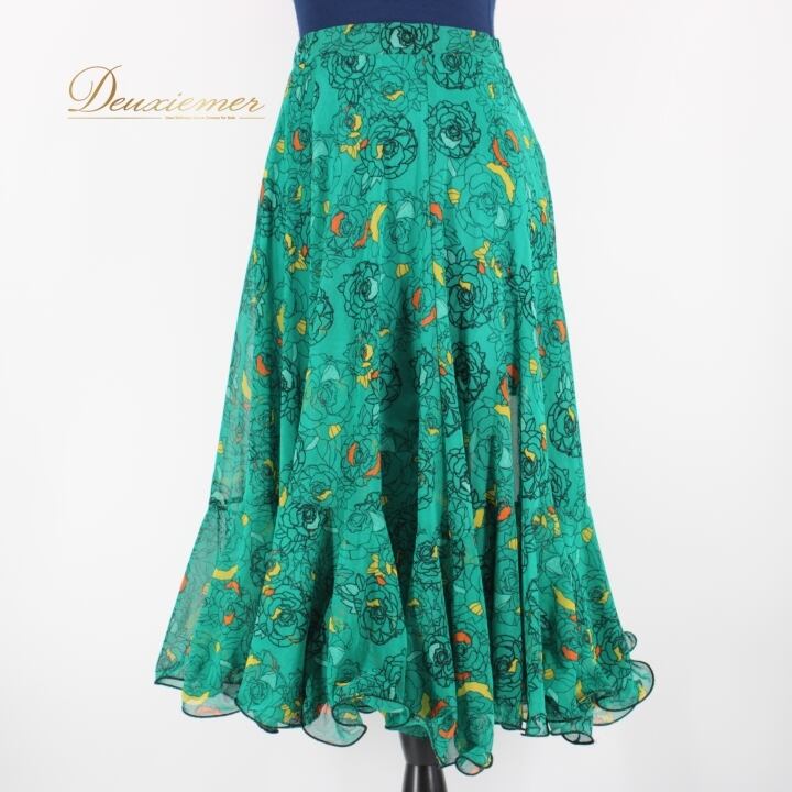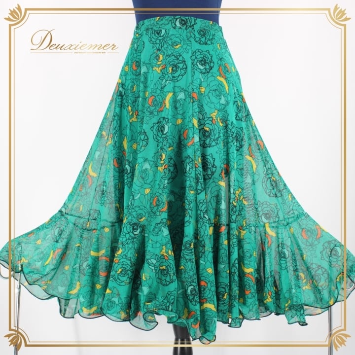 #社交ダンス #ダンス衣装 #スカート #舞台衣装 #花柄 #ブラックグリーン #ウエストゴム #伸縮性 #ポリエステル #ダンススタイル #ファッション #トルソー #ダンスウェア #女性用衣装 #アクティブウェア #パフォーマンス衣装 #オシャレ #ダンスファッション #ダンスレッスン #ENUTSU