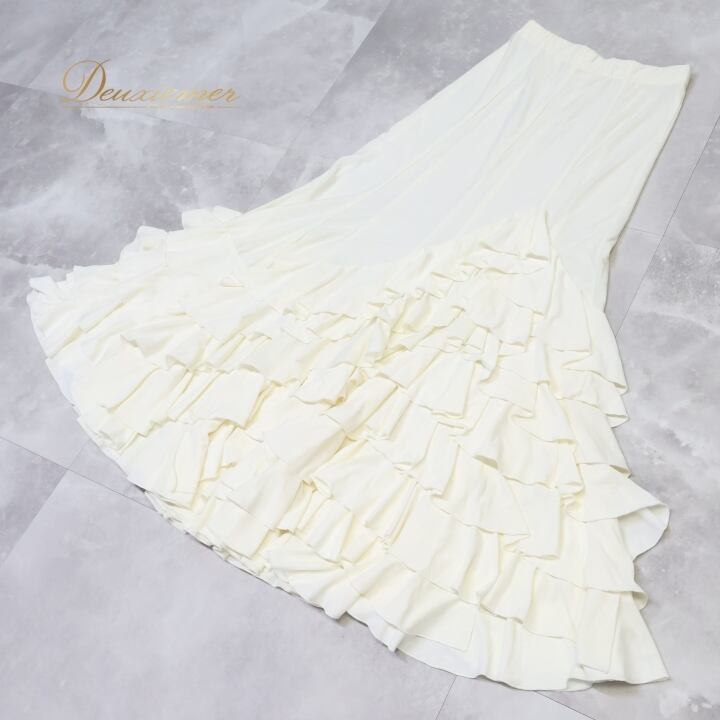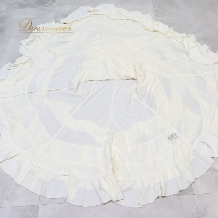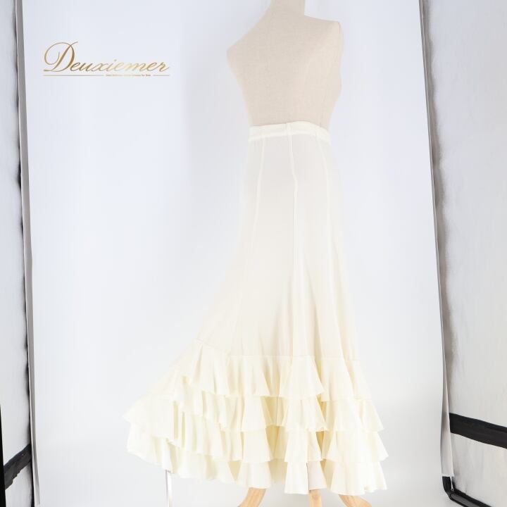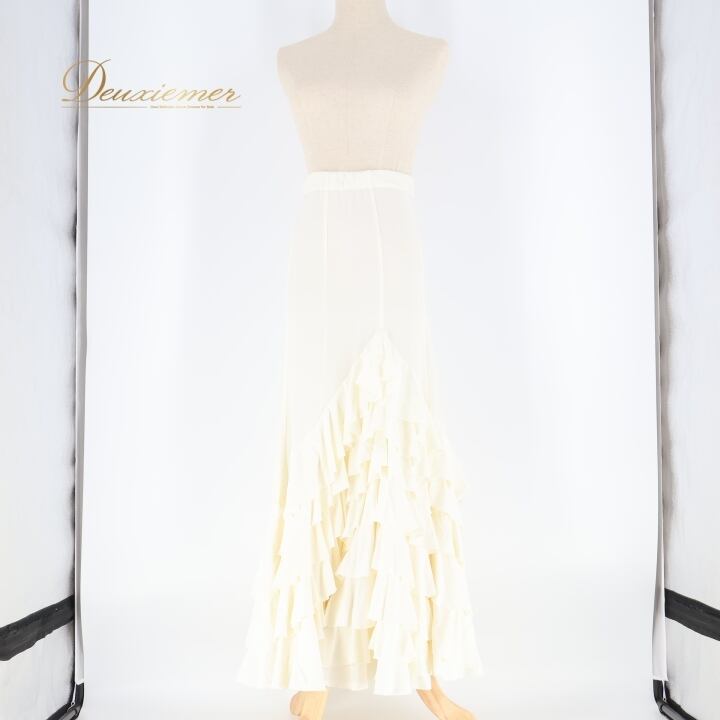 フラメンコ 衣装 ファルダ スカート 白 無地 ボランテ フリル レース 伸縮 ストレッチ ホワイト系 ロングスカート フェミニン おしゃれ 着回し 伸びる素材 ゴムウエスト 上品 スカート