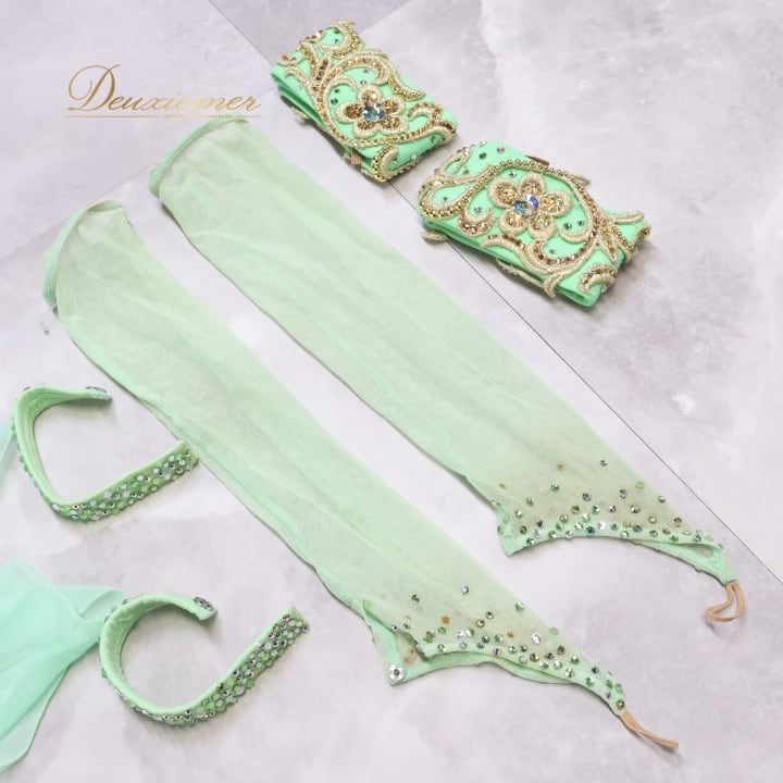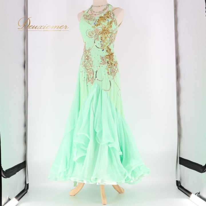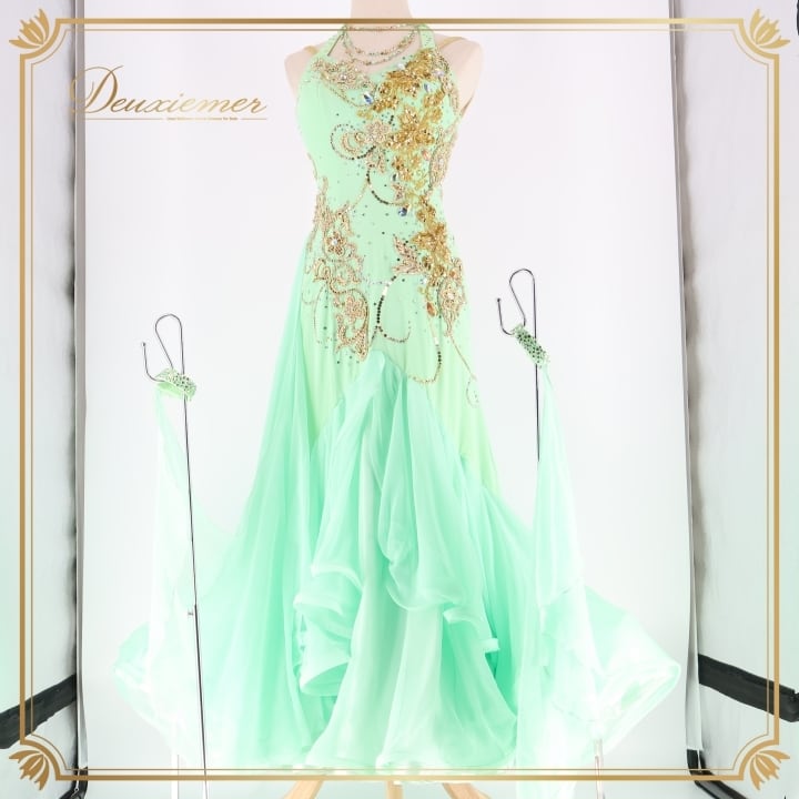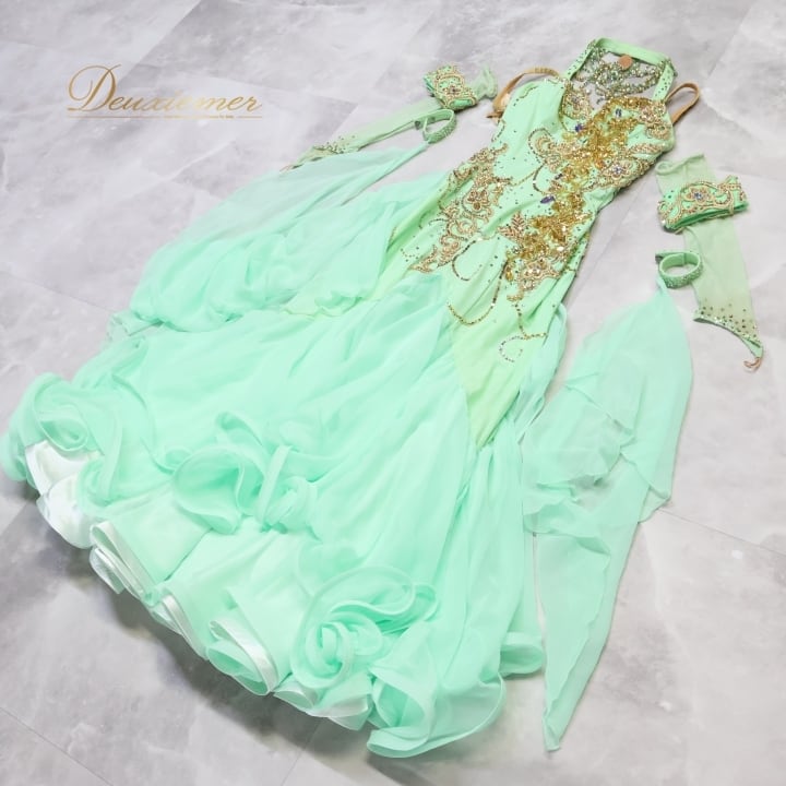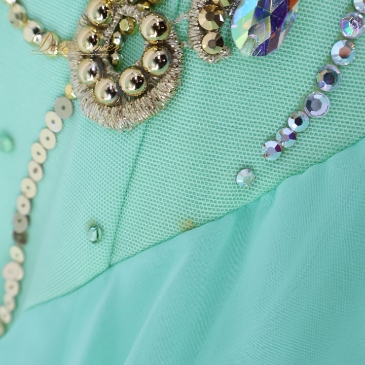 社交ダンス 衣装 チャコット Chacott スタンダード ドレス スタンダードドレス ワンピース 緑 黄緑 青 フロート レース デモ 競技 グリーン系 ブルー系 ミント色 美しい 薄荷色 フロア映え イベント用 発表会 ダンスパフォーマンス レディース ドレスアップ