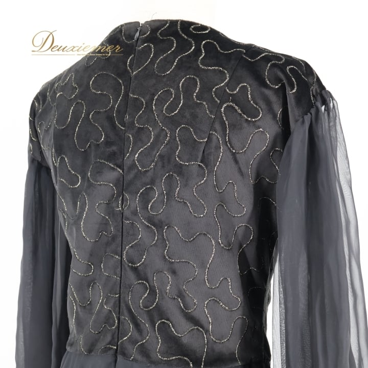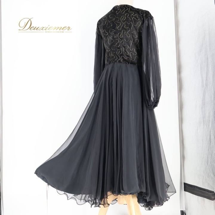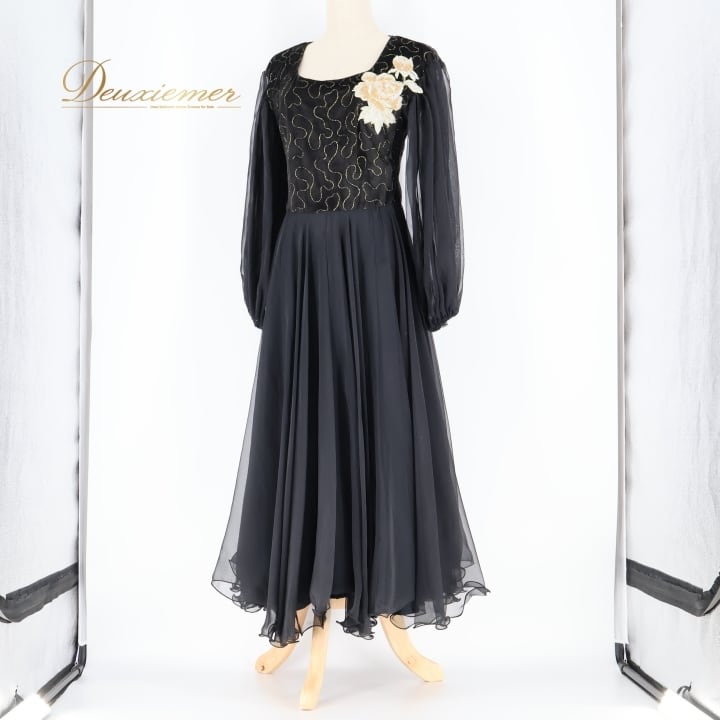 社交ダンス 衣装 チャコット Chacott ワンピース ドレス パーティドレス 黒 ベロア レース 上品 綺麗 フリル 長袖 発表会 ブラック系 上質 軽量 動きやすい 美しい エレガント おしゃれ イベント用 シンプル フォーマル 発表会用