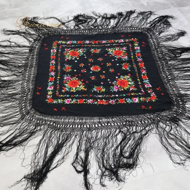 フラメンコ 衣装 マントン シージョ 黒 赤 刺繍 フレコ フリンジ 小物 小道具 ダンス パーティ 発表会 花柄 舞台 装飾 ブラック系 レッド系 コスチューム フラメンコ衣装 舞台衣装 ダンス衣装 花模様 刺繍マントン ステージパフォーマンス フリンジデザイン エレガント 発表会用 ゴージャス おしゃれ