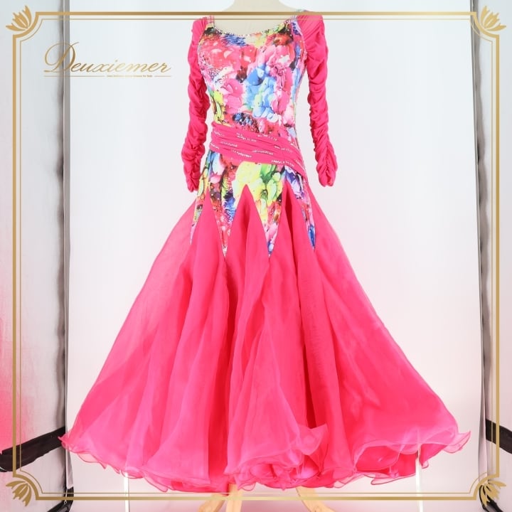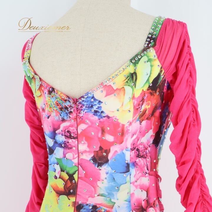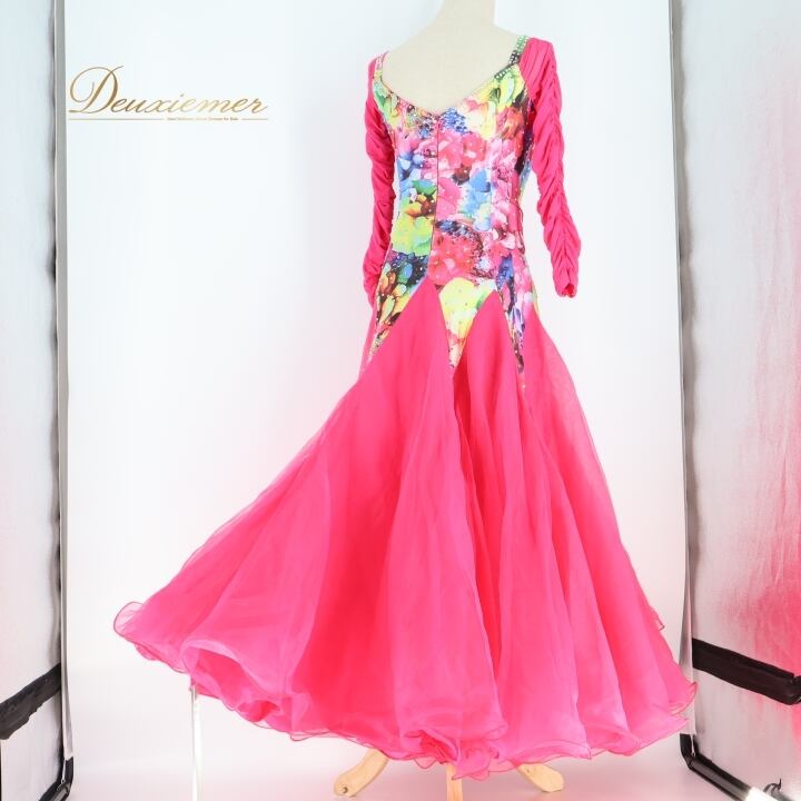 #社交ダンス #ダンス衣装 #ワンピース #ドレス #ピンクドレス #ファッション #おしゃれ #花柄 #ダンスコスチューム #レオタード #女性用 #サイズL #背面ファスナー #柔らかい素材 #ダンスパフォーマンス #ダンスレッスン #可愛い #トルソー #スリムフィット #ENUTSU