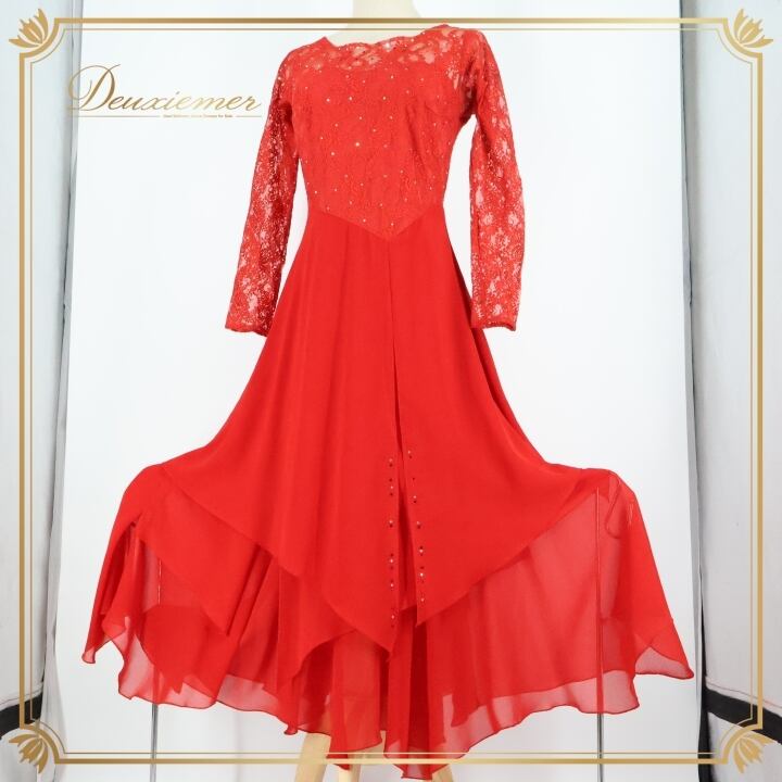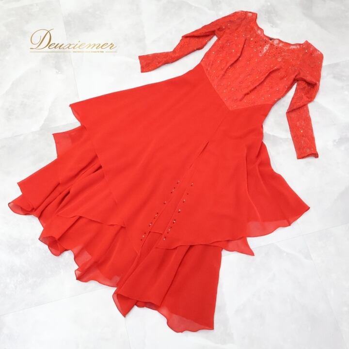 #社交ダンス #ダンス衣装 #ドレス #オールレッド #ラインストーン #日本製 #ファッション #女性用 #ダンススタイル #パーティー #ドレスコーデ #ストリートスタイル #Mサイズ #ポリ素材 #伸縮性 #トルソー #社交ダンスドレス #ダンスファッション #おしゃれ #ENUTSU