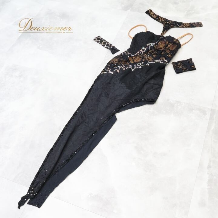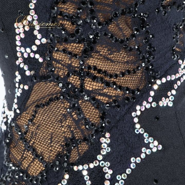 社交ダンス 衣装 ラテン ドレス ワンピース ラテンドレス レース デモ 競技 パーティ 発表会 上品 高級感 ブラック系 ストレッチ おしゃれ レディース エレガント 競技用 ドレスアップ パーティ フォーマル セクシー 軽やかバー パフォーマンス
