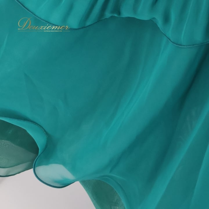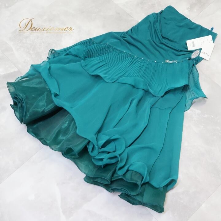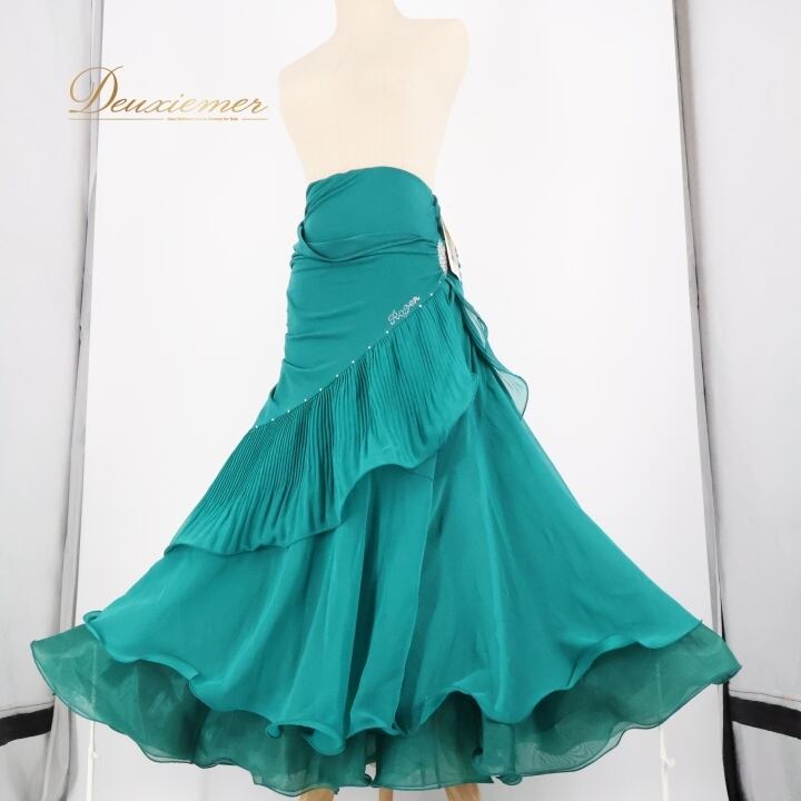 #社交ダンス #ダンス衣装 #スカート #緑色 #ラインストーン #二重スカート #ウエストゴム #伸縮性 #ファッション #ダンススタイル #女性用トルソー #衣装デザイン #ダンスコスチューム #軽やかさ #シルエット #トレンド #ダンス愛好者 #舞台衣装 #おしゃれ #ENUTSU