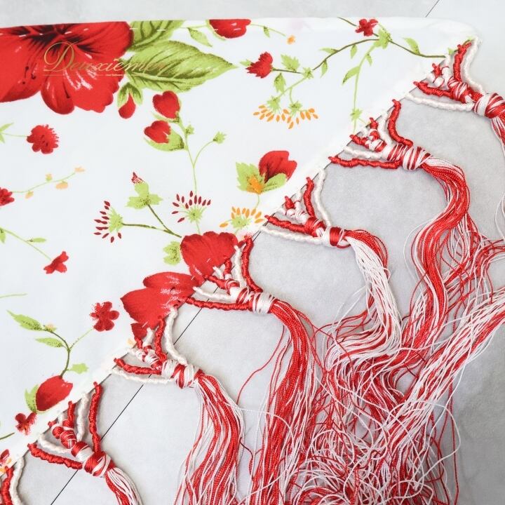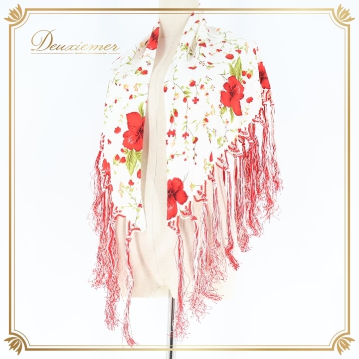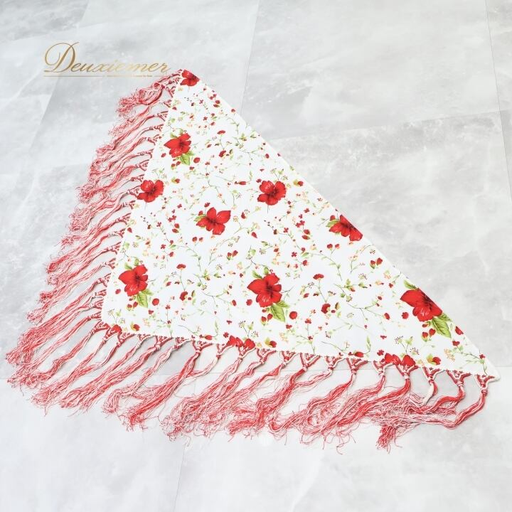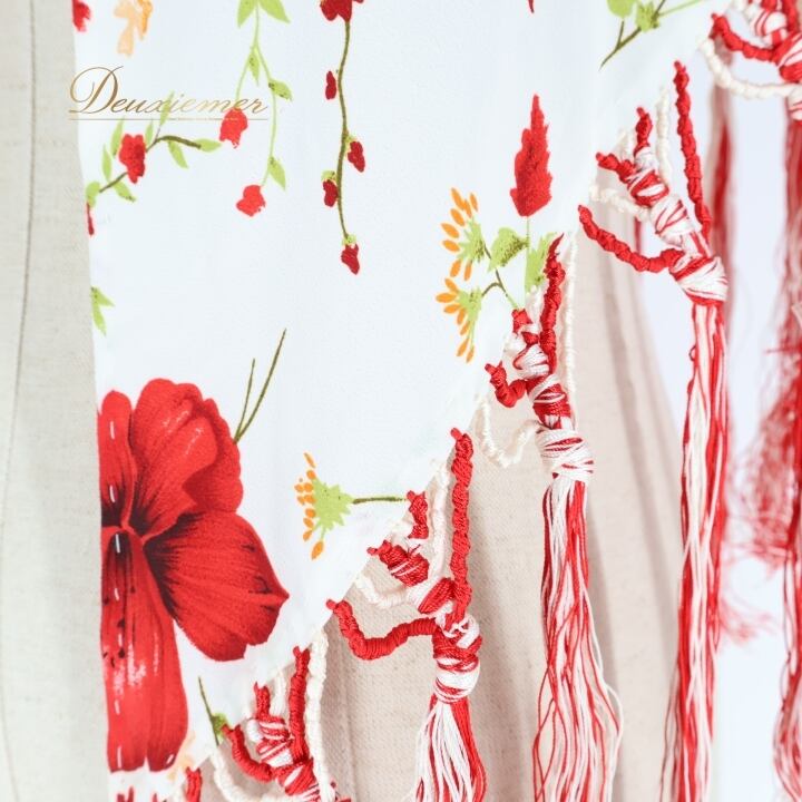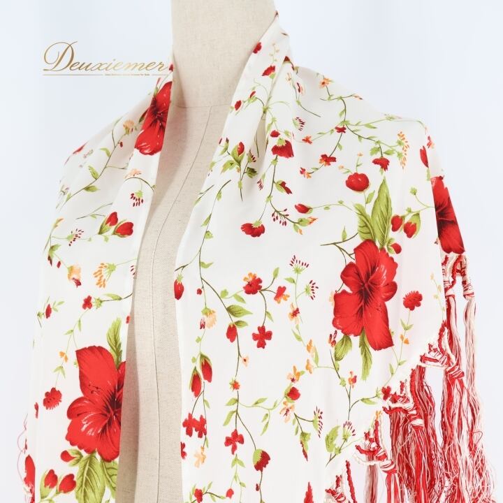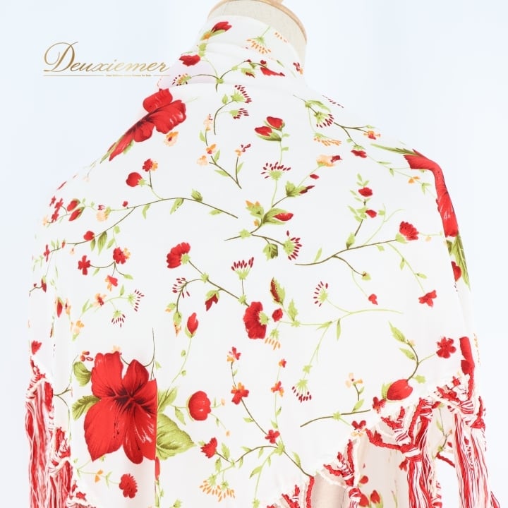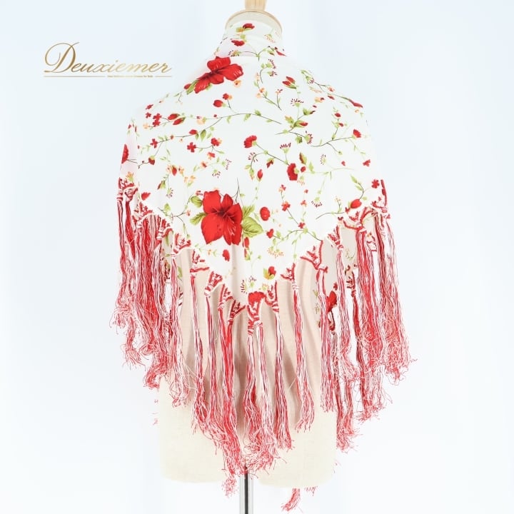フラメンコ 衣装 シージョ トライアングル 三角形 フレコ 花柄 ハイビスカス 白 赤 フリンジ フレコ ホワイト系 レッド系 フラメンコ 衣装 ダンス衣装 コスチューム 花柄デザイン おしゃれ ハワイアンスタイル 軽量