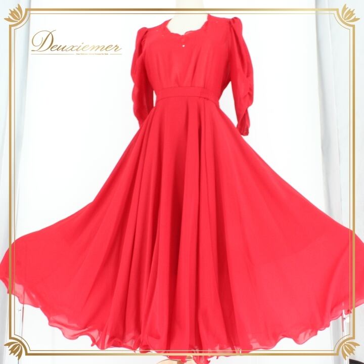 社交ダンス 衣装 スタンダード 上下セット ツーピース パーティ衣装 女性用 レディース オールシーズン U:NA ユーナ 赤 レッド系 無地 派手 ポリエステル製 Mサイズ 長袖 フレア スカート おしゃれ カジュアル ダンスウエア ルームウェア コスチューム きれいめ サルサ ダンスイベント 競技用 フェスティバル お出かけ トレンド