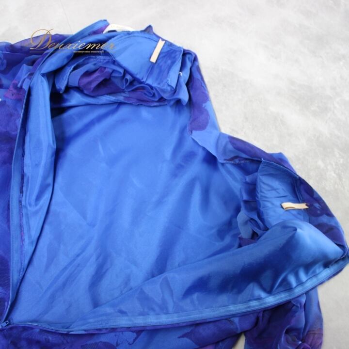 社交ダンス 衣装 スタンダード 上下セット ツーピース レッスンウェア パーティ衣装 レディース オールシーズン U:NA ユーナ 青 ブルー系 パーティ用 ダンスウェア レディース衣装 レッスン用 衣装 Mサイズ ファスナー付き 伸縮性あり トップス スカート 組み合わせ おしゃれ スタイリッシュ 花柄 フィット感 上品 カジュアル コスチューム ステージ衣装 軽量 高品質