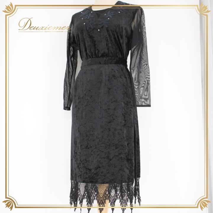 社交ダンス 衣装 スタンダード 上下セット ツーピース レッスンウェア パーティ衣装 女性用 オールシーズン U:NA ユーナ 黒 レース 長袖 光沢感 滑らか クラシック ブラック系 シック レース素材 ラインストーン付き 伸縮性 Mサイズ ファスナー仕様 おしゃれ ダンスウェア パーティー用 トップス スカート セットアップ