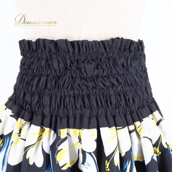 #フラダンス #パウスカート #フラダンス衣装 #ハイビスカス #ブラック #大人っぽい #ダンスファッション #ウエストゴム #リゾートスタイル #ポリエステル #トロピカル #フラ #ハワイアン #エスニックファッション #夏の衣装 #女性トルソー #レディースファッション #おしゃれ #カジュアル #ENUTSU