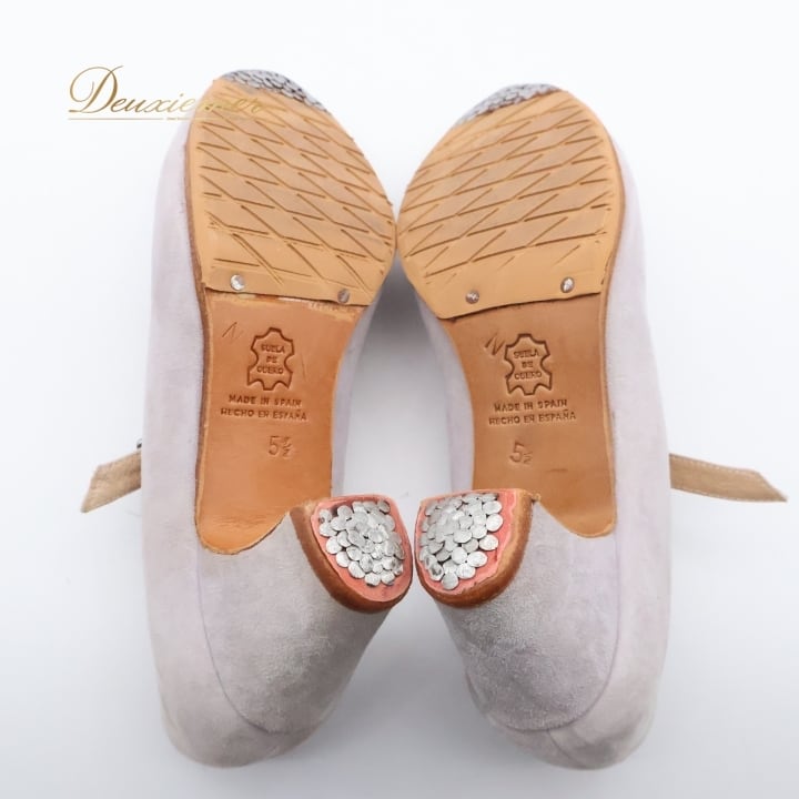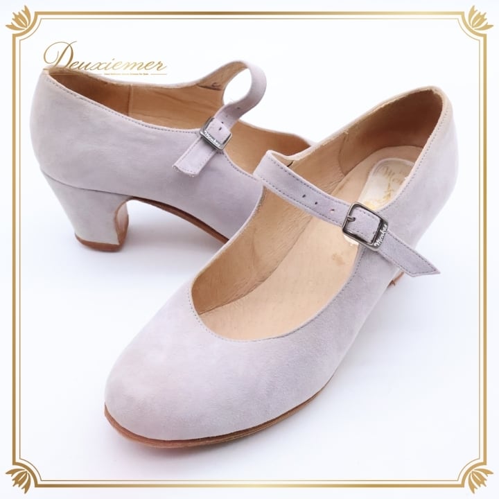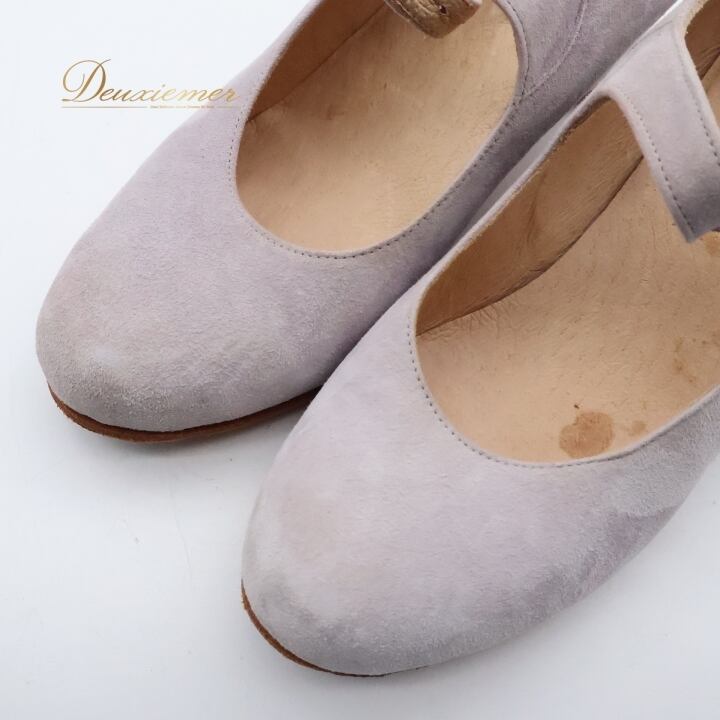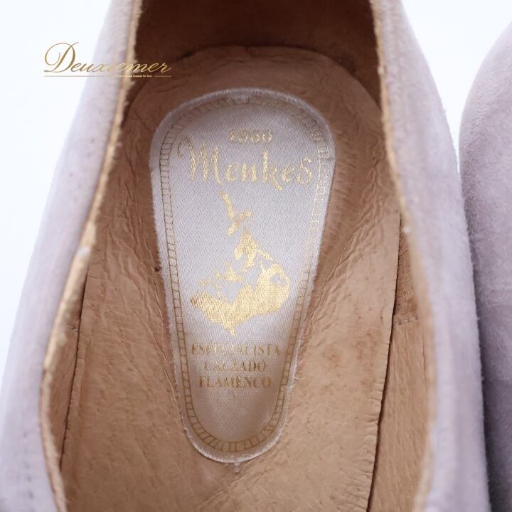フラメンコ 衣装 サイズ5 1/2 Menkes 靴 レディース グレー系 パープル系 薄紫 ヒール 釘有り メンケス スペイン製 スウェード ダンス シューズ 練習 舞台 ス おしゃれ かわいい フラメンコダンス