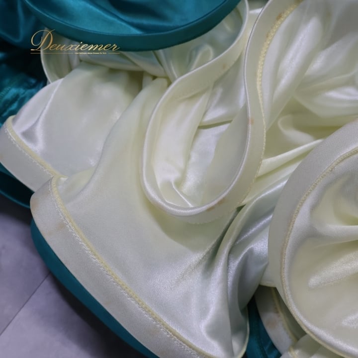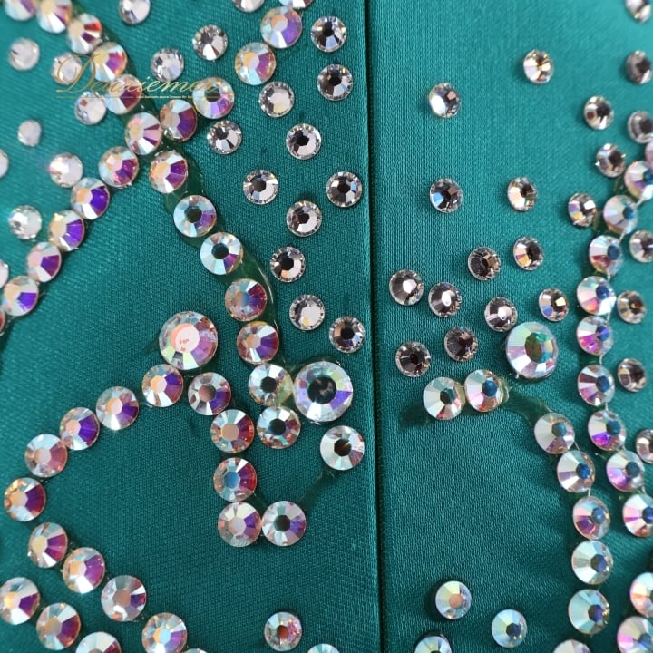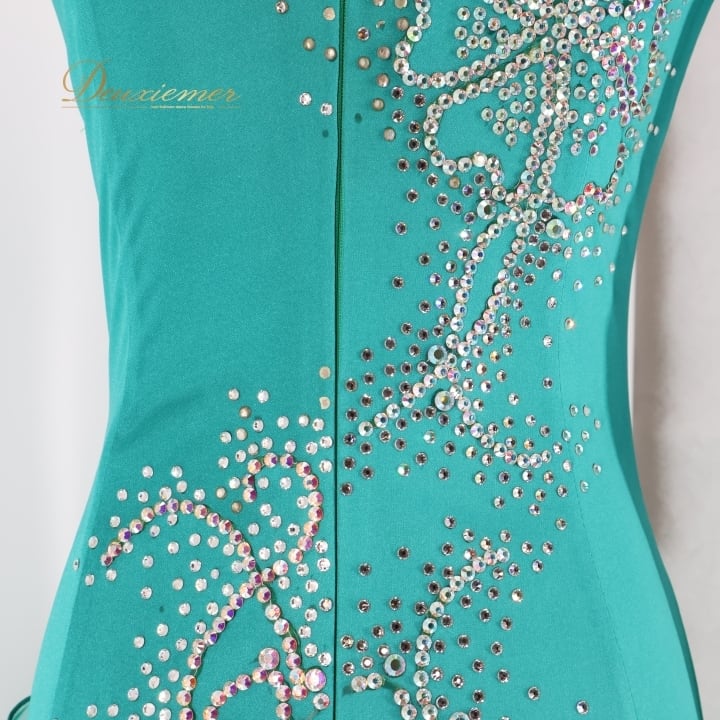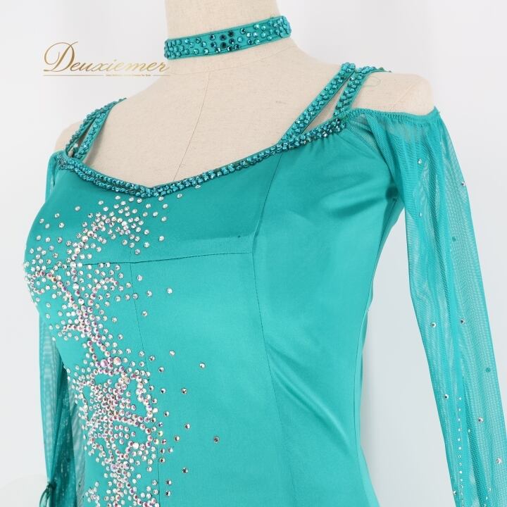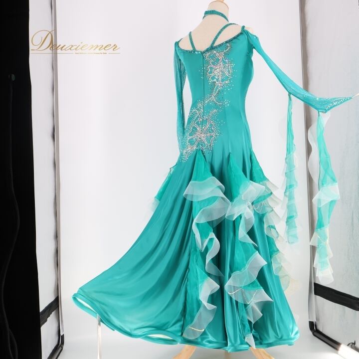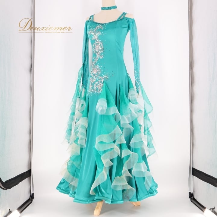 #社交ダンス #ダンス衣装 #ワンピース #ドレス #青緑 #光沢感 #高級感 #フリル #動きのある衣裳 #女性用トルソー #ダンスドレス #ファッション #パーティードレス #ドレスコーデ #ダンススタイル #夜会服#dancecostume #ENUTSU