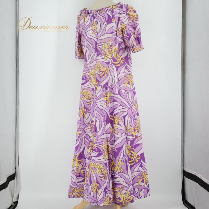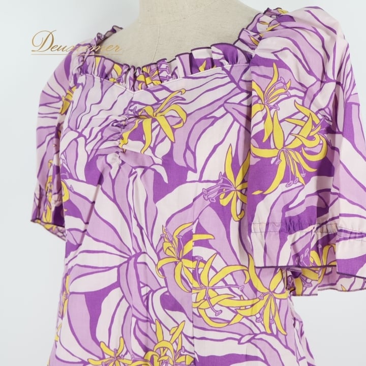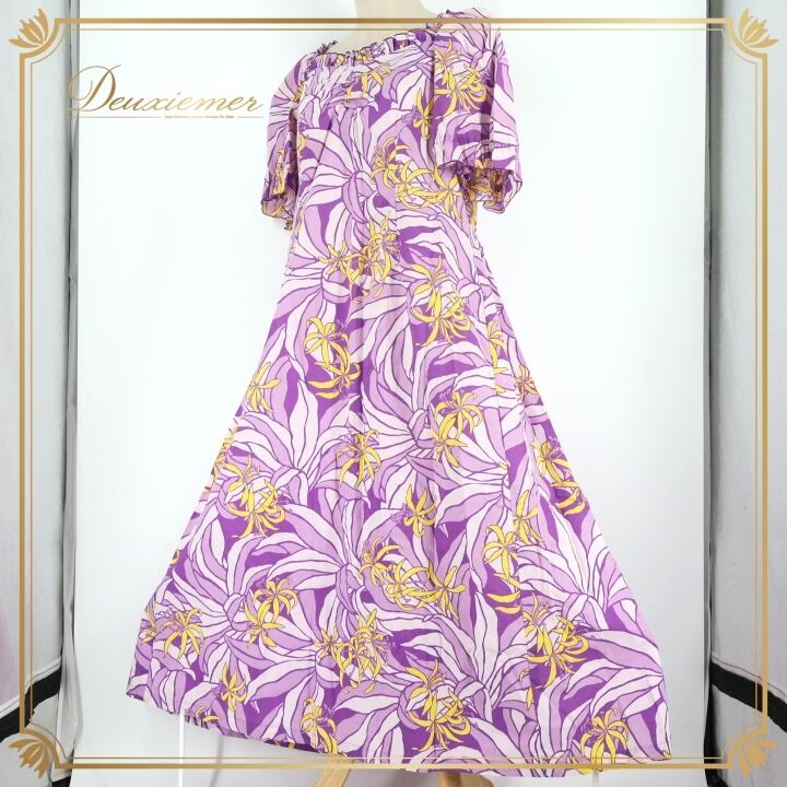 フラダンス 衣装 ワンピース ドレス パープル系 マーメイドライン エムエムジェイ 日本製 ハワイアンプリント アロハ フリル袖 かわいい おしゃれ 華やか レッスン 練習 MermaidLine MMJ ホワイト系 イエロー系紫 薄紫 白 黄 フラ ダンス フラダンス 衣装 ドレス ワンピース レディース ハワイアン フリル 袖 花柄 スカート 練習用 リゾート 上品 カジュアル かわいい おしゃれ 女性用 紫系