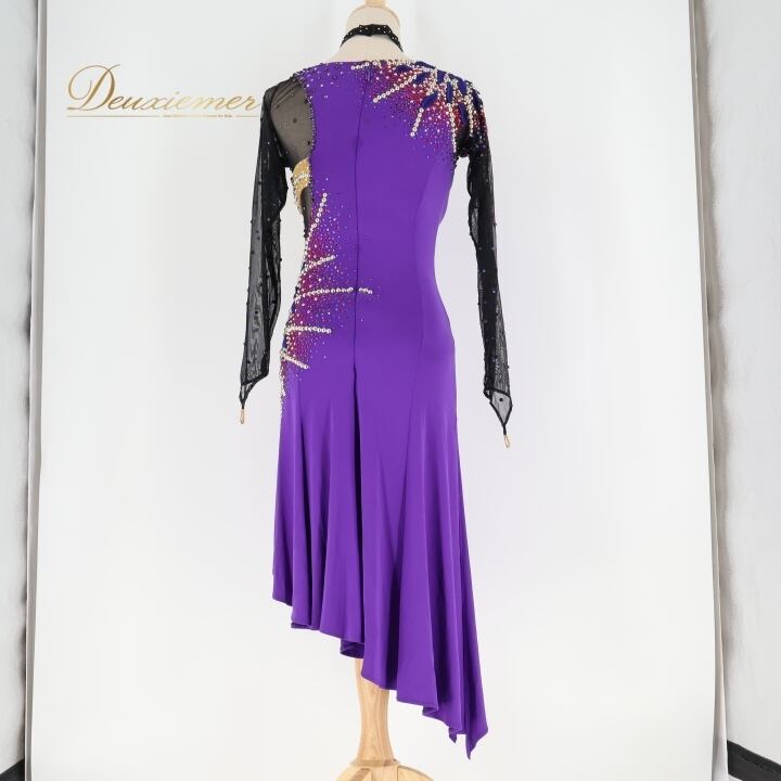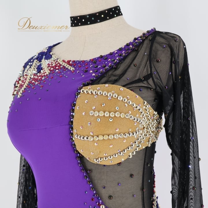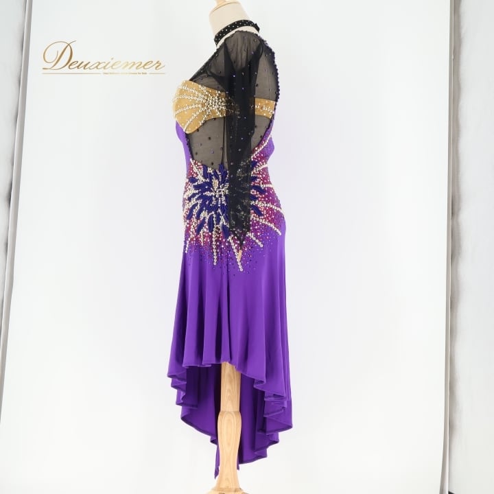 #社交ダンス #衣装 #ラテンドレス #ワンピース #ダンスファッション #ダンス衣装 #紫ゴールド #スタイル #デザイン #ファッション #ウエスト #伸縮性 #おしゃれ #トルソー #ダンス #女性用 #舞台衣装 #特別な日 #パーティー #ENUTSU