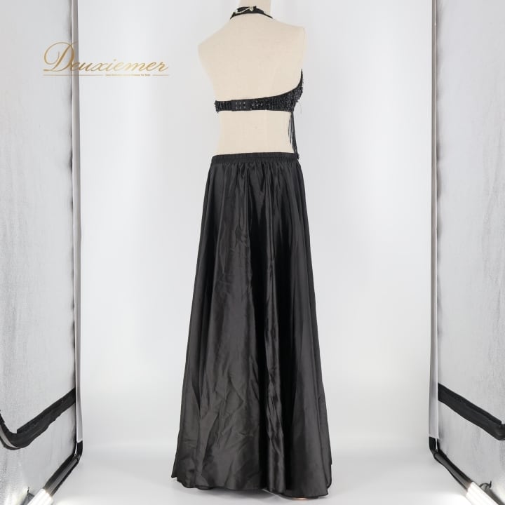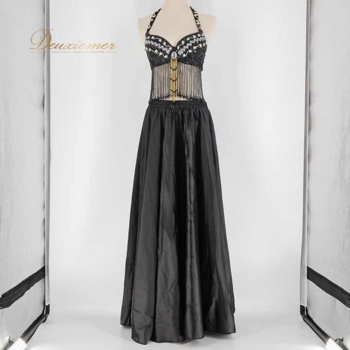 ベリーダンス オリエンタル 衣装 上下セット ブラック系 スパンコール フリンジ ヘッドスカーフ 3点 セット トップス スカート 黒 金 青 花 ビーズ ラインストーン 煌びやか 華やか かわいい ダンス衣装 舞台 装飾 豪華 ゴールド系 ピンク系 ブルー系