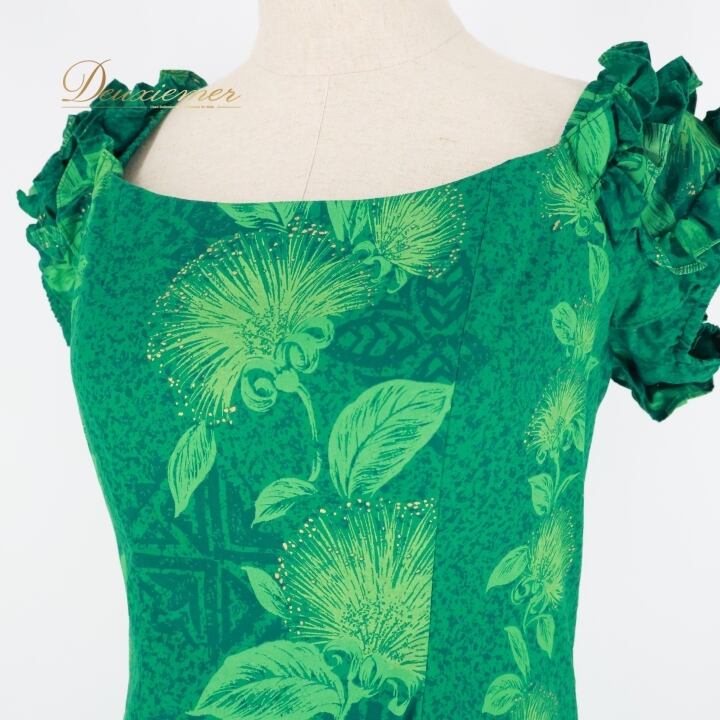 #フラダンス #フラダンス衣装 #ドレス #ワンピース #グリーン #フリル袖 #エレガント #パーティードレス #女性用トルソー #ファッション #春夏ファッション #オシャレ #大人可愛い #衣装 #ハワイアン #アロハ #ダンス衣装 #リゾートファッション #特別な日 #CCFashions #ENUTSU