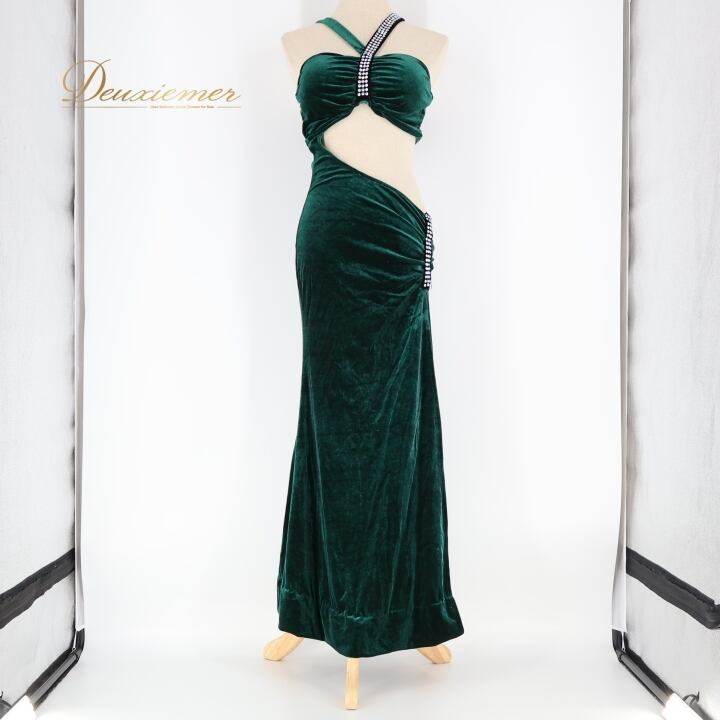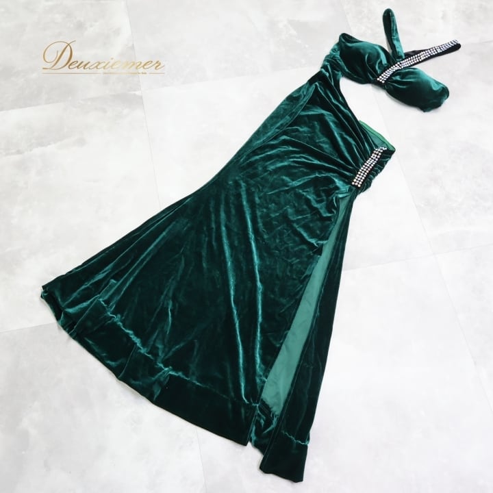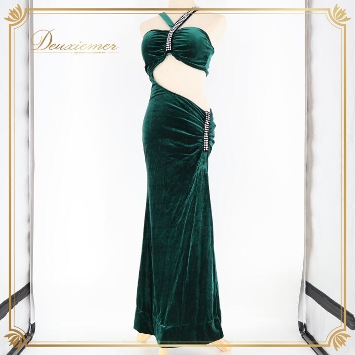 #ベリーダンス #衣装 #ワンピース #ドレス #グリーン #ベロア #高級感 #フェミニン #女性用トルソー #ウェディング #パーティー #コスチューム #スリットドレス #ダンス衣装 #伸縮性 #胸パッド #ファッション #スタイル #おしゃれ #ENUTSU