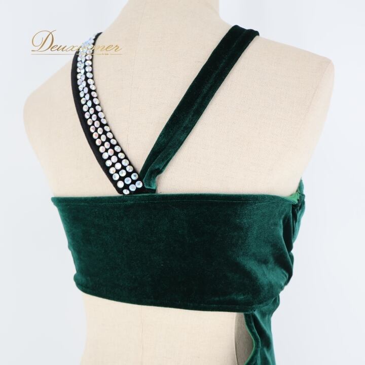 ベリーダンス 衣装 ワンピース ドレス グリーン系 緑 黒 ラインストーン レッスン 練習 ベロア 光沢 上品 ストレッチ 伸縮 一体型 キラキラ オリエンタル バラディ ブラック系