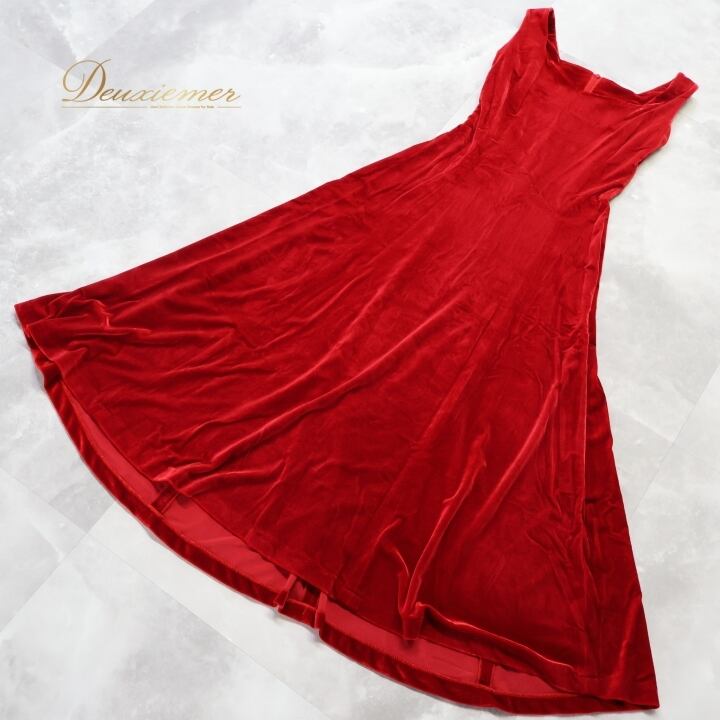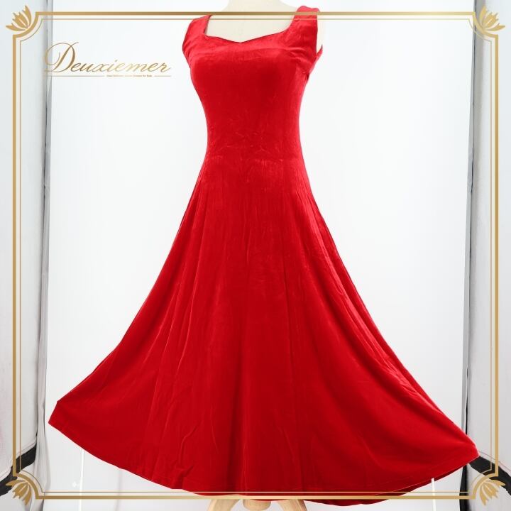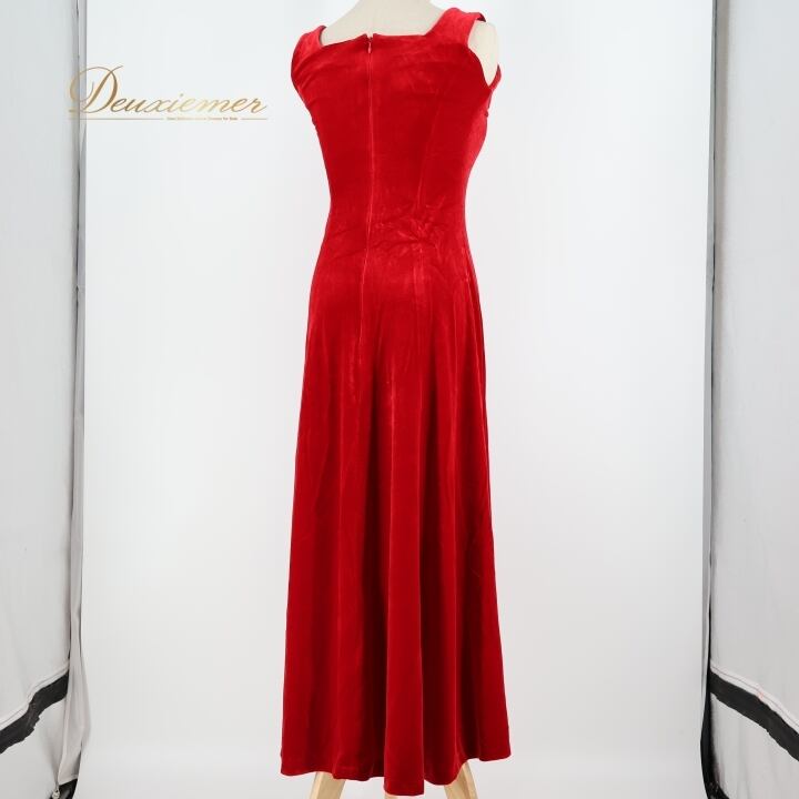 フラダンス 衣装 ワンピース ドレス レッド系 ワンカラー ベロア ノースリーブ 高級感 綺麗 華やか 鮮やか 派手 情熱的 赤 ロングワンピース ハワイアン アロハ フラ ダンス レッスン 練習 フラダンス衣装 セクシー