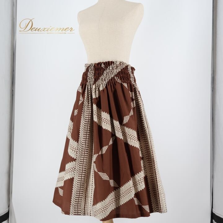 #フラダンス #フラダンス衣装 #パウスカート #ハワイアン #ダンス衣装 #ブラウン #ホワイト #シンプルデザイン #ウエストゴム #トルソー #女性用 #アロハ #衣装 #フラスタイル #ダンスファッション #衣装製作 #ハワイ #優雅 #ファッション #ENUTSU