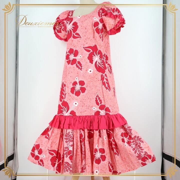 #フラダンス #衣装 #ワンピース #ドレス #ピンク #レッド #フリル #ハイビスカス #華やか #ダンス #ファッション #夏 #ビーチ #イベント #パーティー #カラフル #女性用 #トルソー #スタイル #ENUTSU