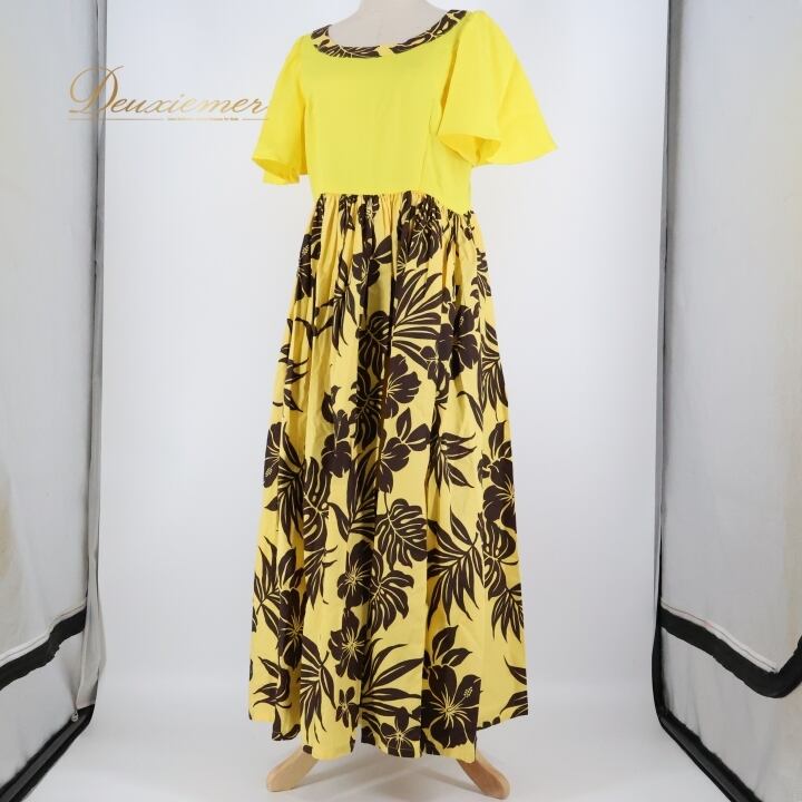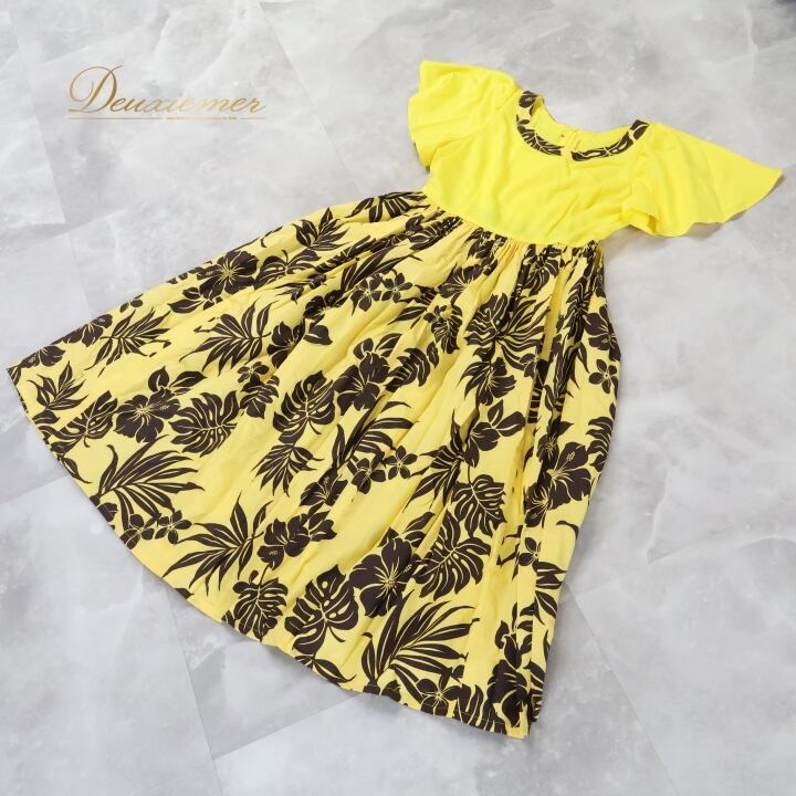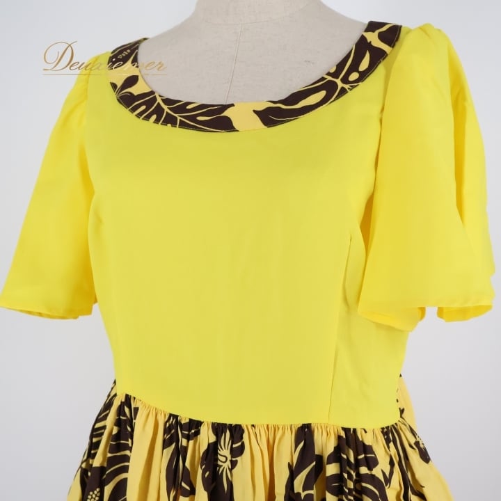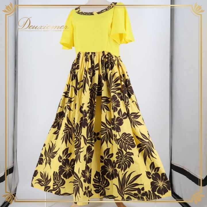 #フラダンス #衣装 #ワンピース #ドレス #ハワイアン #イエロー #ブラック #かわいい #プリント #ダンス衣装 #パーティー #イベント #フェスティバル #ビーチ #リゾート #女性専用 #夏コーデ #チクチクしない #スタイル #ENUTSU