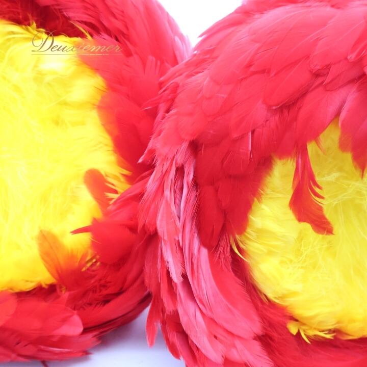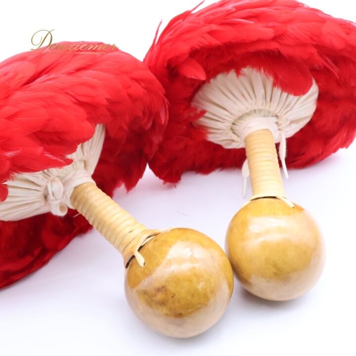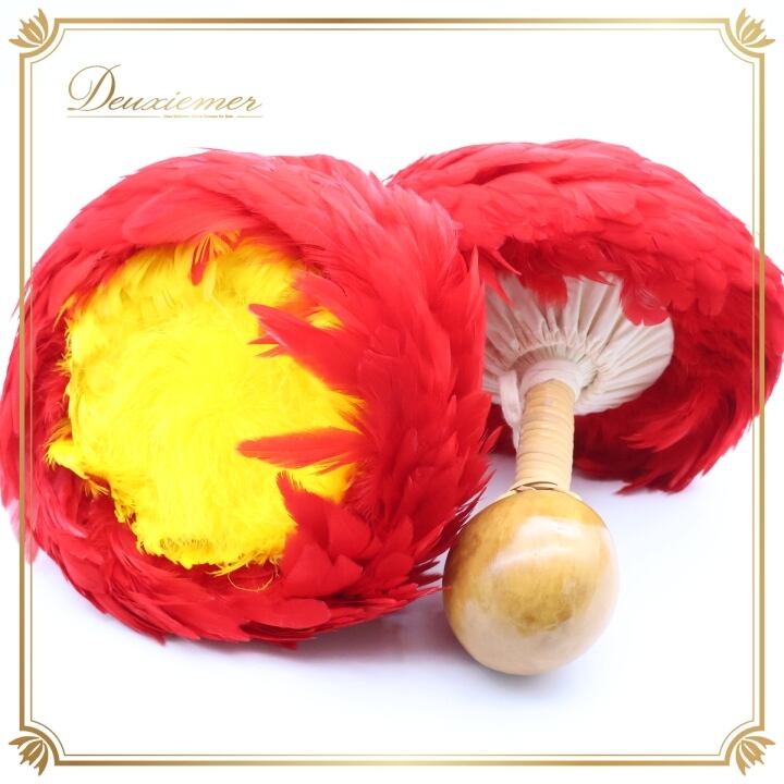 フラダンス ウリウリ マラカス 小物 小道具 楽器 レッド系 赤 イエロー系 黄色 分離型 民族舞踊 タヒチアン ダンス 羽 ファー ケース付き 民族楽器 フラダンス用品 踊り タヒチアンダンス ダンス小物