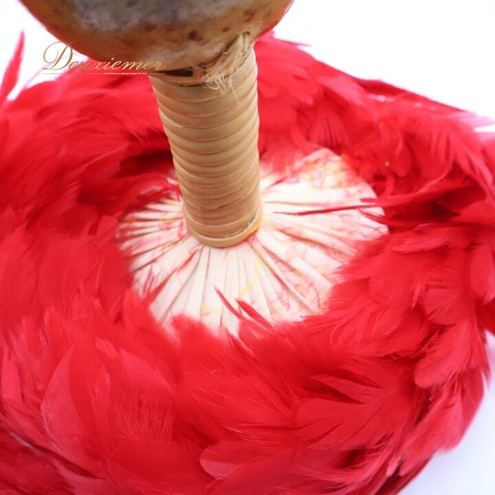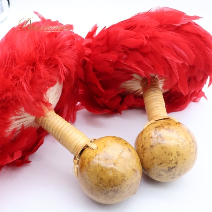 フラダンス ウリウリ マラカス 小物 小道具 楽器 レッド系 赤 イエロー系 黄色 一体型 民族舞踊 民族楽器 ダンス タヒチアン 羽 ファー イベント 舞台 発表会 練習 タヒチアンダンス カラフル 赤色 黄色系 マラカス楽器 ダンス小物