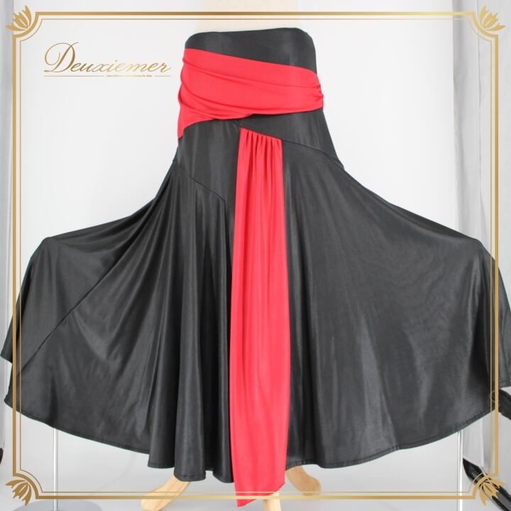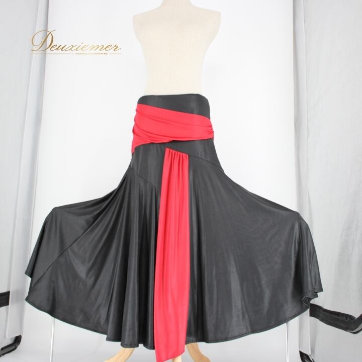 #社交ダンス #ダンス衣装 #スカート #ブラック #レッド #ポリエステル #ウエストゴム #伸縮性 #ダンスファッション #カスタムデザイン #ダンスイベント #トルソー #スタイルアップ #女性用 #衣装コーディネート #ダンススタイル #社交ダンス衣装 #フィット感 #パフォーマンス #ENUTSU