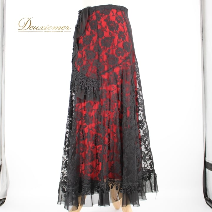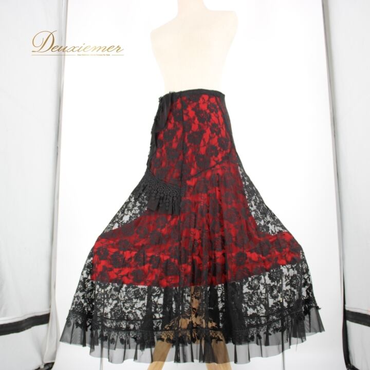 #社交ダンス #ダンス衣装 #スカート #レーススカート #ブラックレッド #花柄 #ウエストゴム #伸縮性 #ポリエステル #ファッション #ダンスファッション #スタイル #ウエア #アクティブウェア #パフォーマンス #ダンススタイル #トルソー #女性用 #おしゃれ #ENUTSU