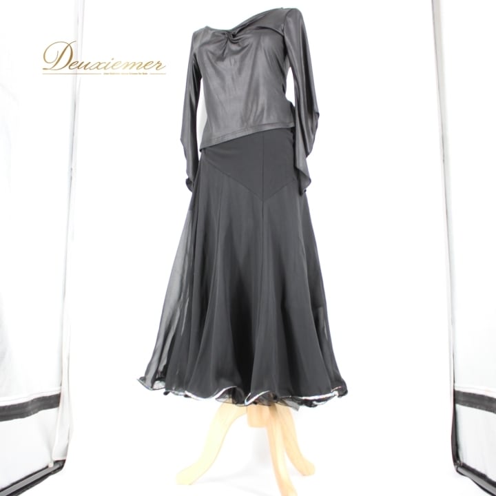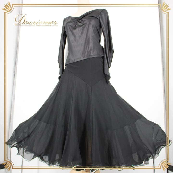 社交ダンス 衣装 スタンダード 上下セット ツーピース パーティ衣装 Create-Sun クリエイトサン 黒 ブラック系 シンプル キラキラ 長袖 ポリエステル 高級感 フィット感 伸縮性 可愛い おしゃれ カジュアル レディース ダンス用 トップス スカート セットアップ ファッション おすすめ 人気 イベント 服装