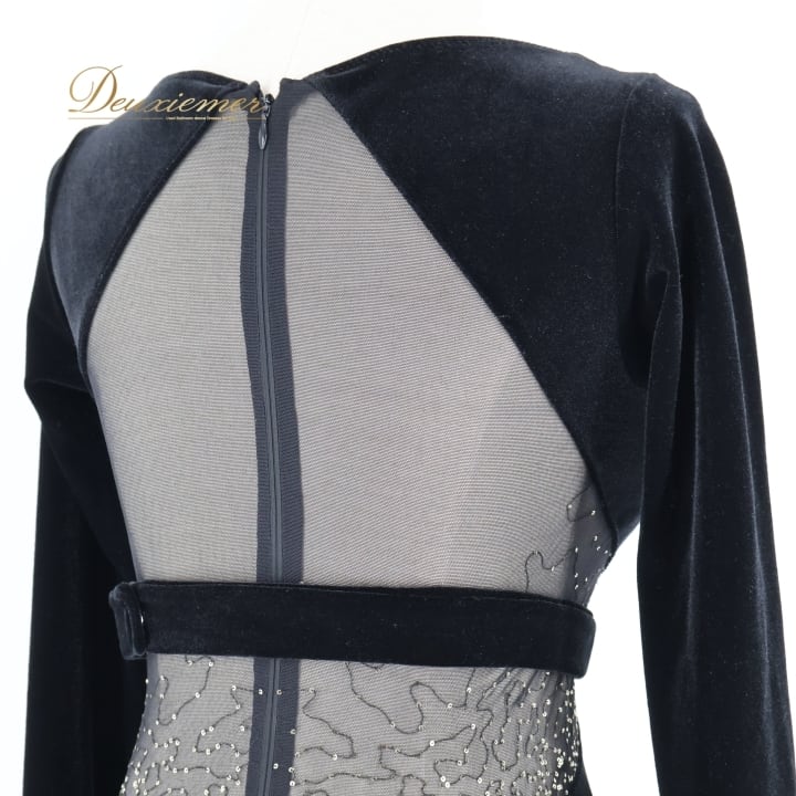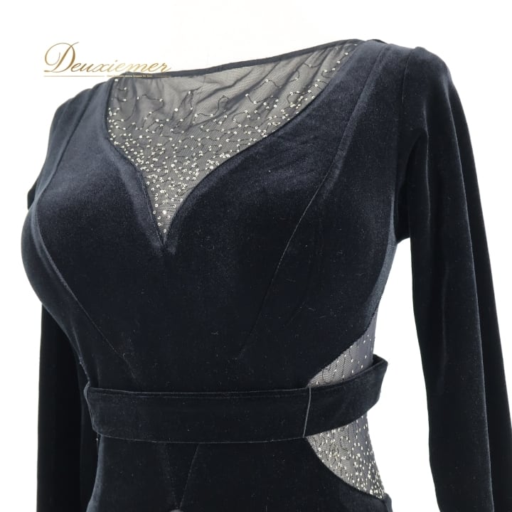 社交ダンス 衣装 チャコット Chacott ドレス ワンピース 黒 ゴールド ベロア 高級感 光沢 ダンス パーティ 発表会 長袖 透け感 スパンコール ブラック系 社交ダンス用 ドレス ステージ衣装 エレガント フォーマル レディース 伸縮性 おしゃれ コンサート 舞台用品 光沢感 シンプル ラグジュアリー ダンス用衣装