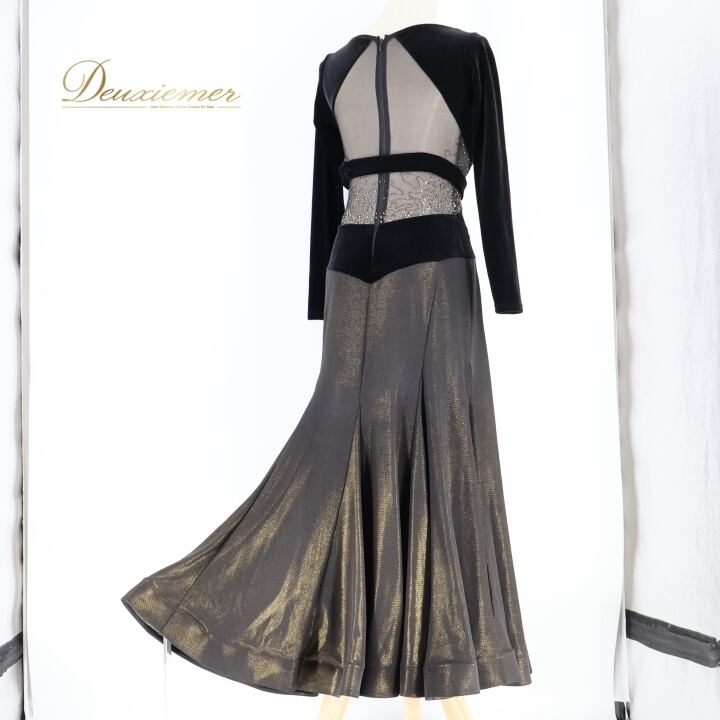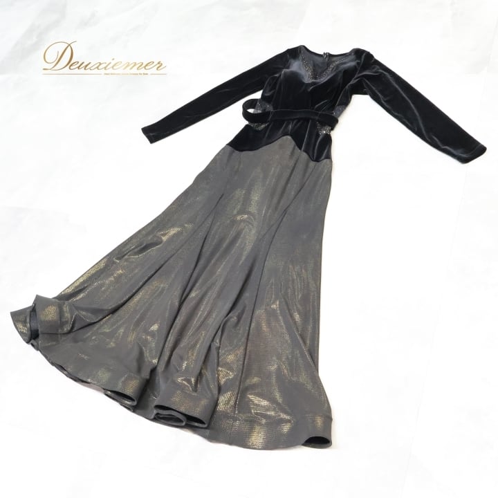 #社交ダンス #ダンス衣装 #ドレス #ワンピース #ダンスコスチューム #チャコット #高級感 #ゴールド #日本製 #ウエストベルト #ファスナー #伸縮性 #胸パッド #ポリエステル #ポリウレタン #ナイロン #スタイル良く見える #女性用トルソー #ダンスイベント #ダンスパフォーマンス #ENUTSU