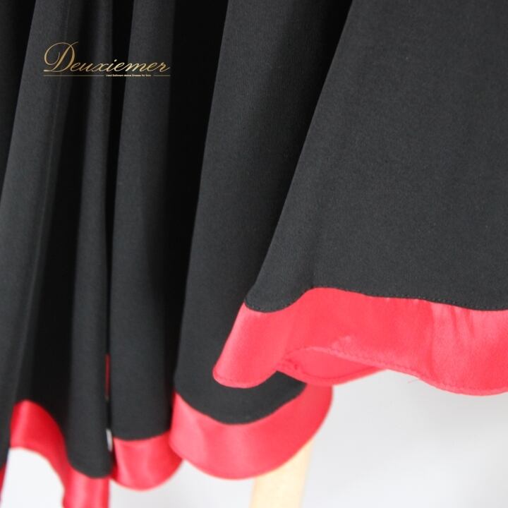 社交ダンス 衣装 スタンダード 上下セット ツーピース パーティ衣装 オールシーズン 黒 赤 Create-Sun クリエイトサン ブラック系 レッド系 大きく広がる裾 伸縮性 ポリエステル ウエストゴム仕様 ツーピースダンス衣装 おしゃれ かわいい ダンスパフォーマンス コスチューム アクティブウェア 女性用 フルスカート パーティーパフォーマンス