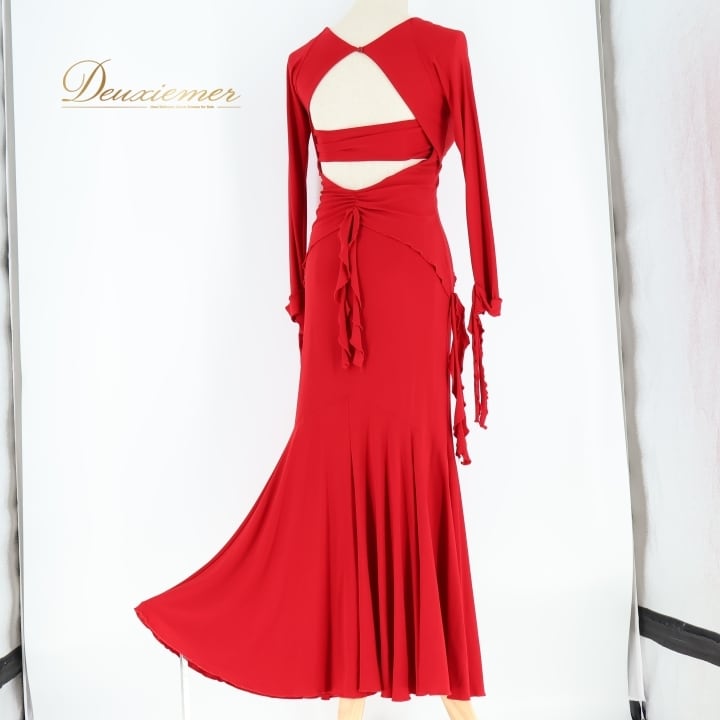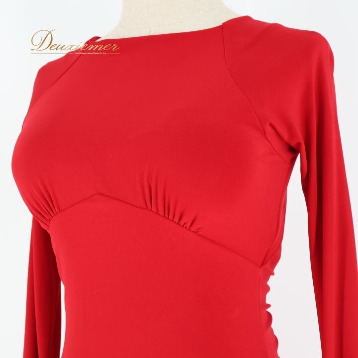 #社交ダンス #ダンス衣装 #ワンピース #ドレス #レッスン着 #高級感 #深い赤色 #女性用 #ファッション #ダンスファッション #伸縮性 #体のライン #トルソー #ポリエステル #胸パッド #スタイル #フォーマル #ダンスパーティー #CreateSun #ENUTSU