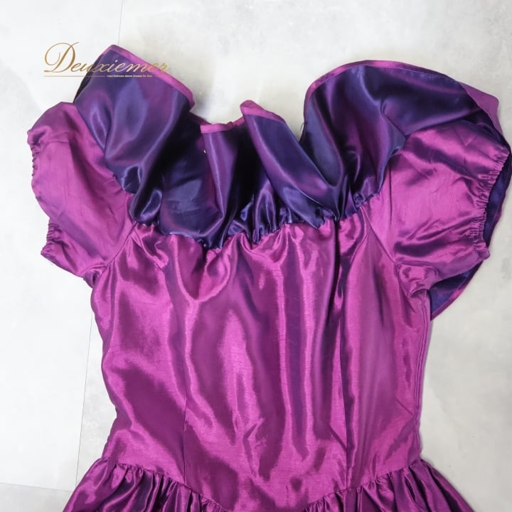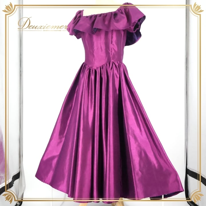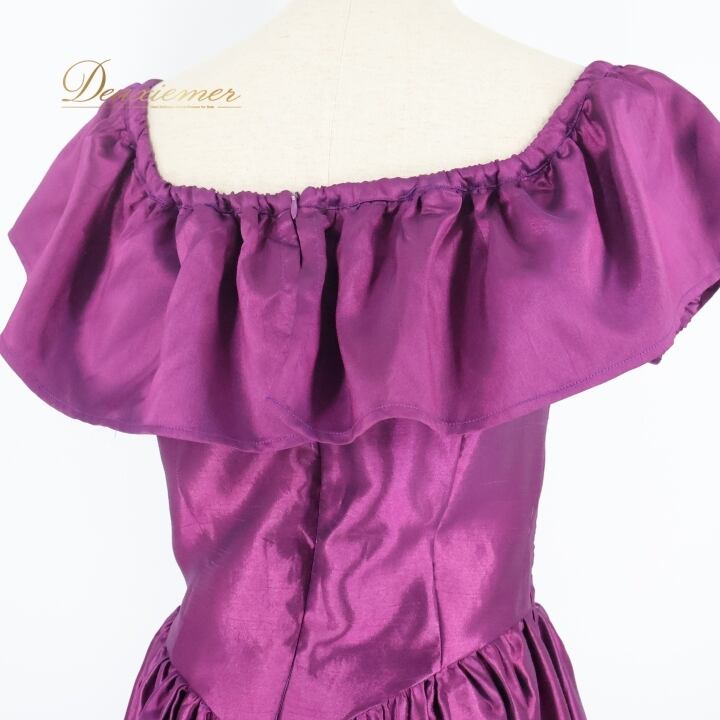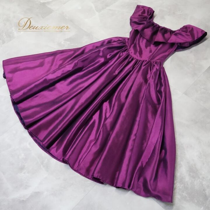 フラダンス 衣装 ワンピース ドレス パープル系 アロハエミカ ハワイアン アロハ フラ ダンス 光沢 高級感 フリル 半袖 かわいい 上品 大人 大人っぽい 無地 シンプル 2way オフショル Aloha Emika 紫 光沢感 上質 生地 おしゃれ 可愛い パーティー 大人用 ステージ衣装 ハワイスタイル クラシック ブランクカラー フレアシルエット エレガント デザイン