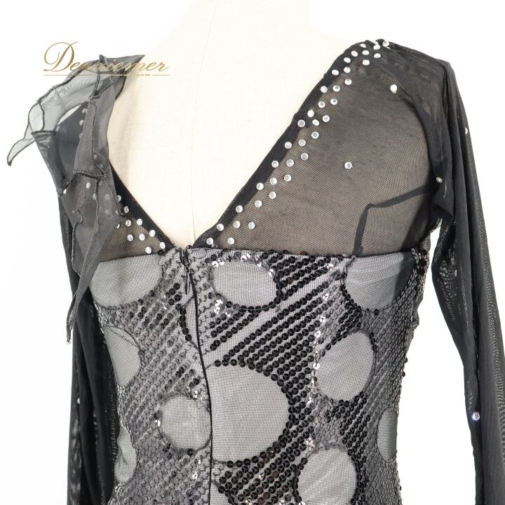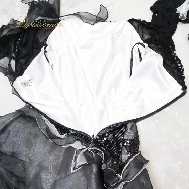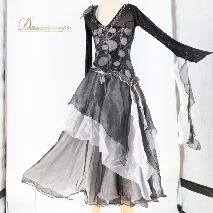 社交ダンス 衣装 スタンダード ドレス スタンダードドレス ワンピース パーティドレス クリエイトサン Create-Sun 水玉 フリル レース ブラック系 ホワイト系 シルバー系 軽量 動きやすい フェミニン かわいい ドレスアップ イベント用 女性用 衣装セット おしゃれ コスチューム パーティ