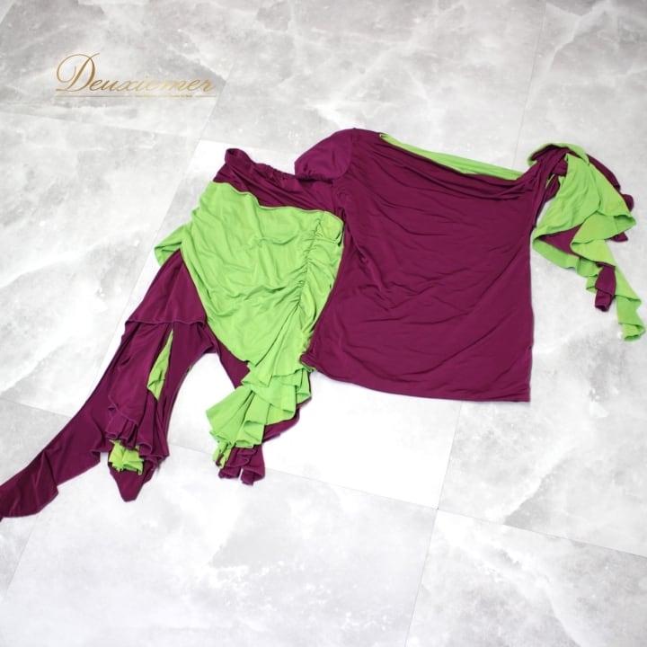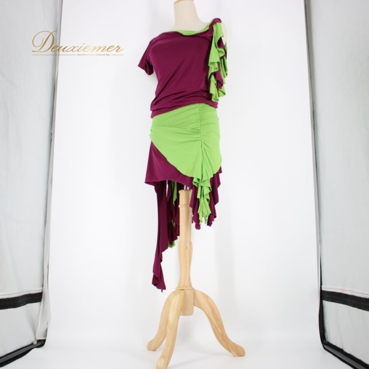#社交ダンス #ダンス衣装 #セットアップ #ライトグリーン #パープル #ダンスファッション #踊る楽しさ #ダンススタイル #女性用トルソー #ポリエステル #スパンデックス #伸縮性 #ウエストゴム #ダンススカート #ダンストップス #ワンサイズ #ダンスウェア #社交ダンス衣装セット #ダンス用衣装 #ENUTSU