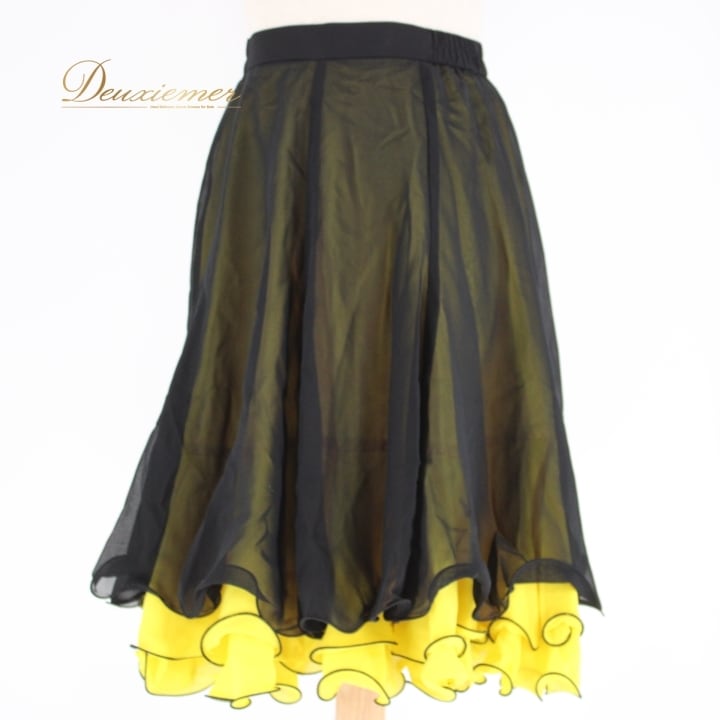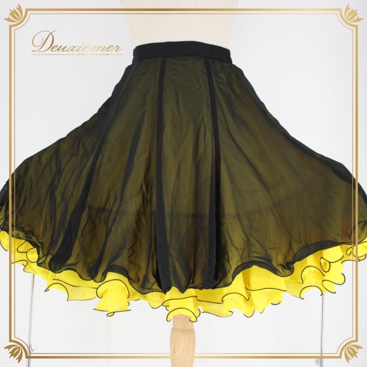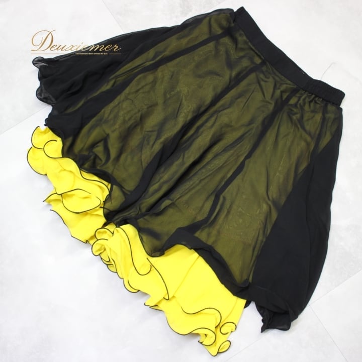 #社交ダンス #ダンス衣装 #スカート #ファッション #ダンススタイル #日本製 #ポリエステル #ブラック #イエロー #ダンス用品 #スカートスタイル #フィットネス #ダンスコスチューム #パピヨン #トルソー #女性ファッション #カルチャー #衣装 #パフォーマンス #ENUTSU