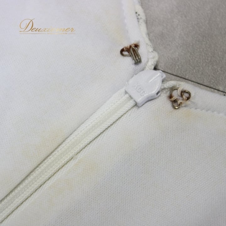 ドレスの内側や裾など所々に若干の黄ばみ、汚れあり。
