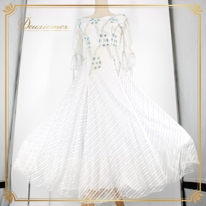 #社交ダンス #ダンス衣装 #DancingDress #ドレス #ホワイト #シルバー #ラインストーン #ファッション #ステージ衣装 #ダンスファッション #トルソー #ダンススタイル #女性用衣装 #ダンスパフォーマンス #おしゃれ #衣装デザイン #イベント衣装 #ラインストーン付き #ダンスコスチューム #ENUTSU