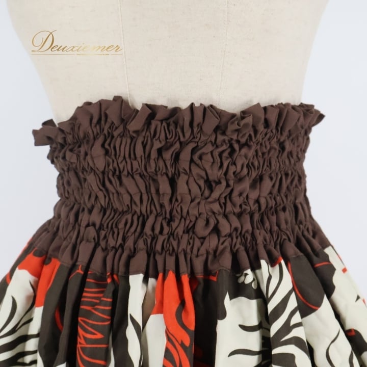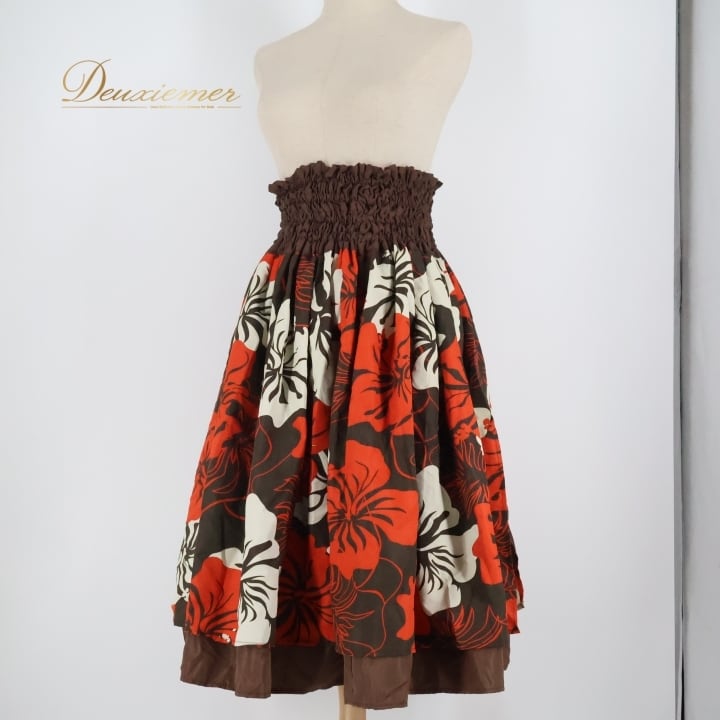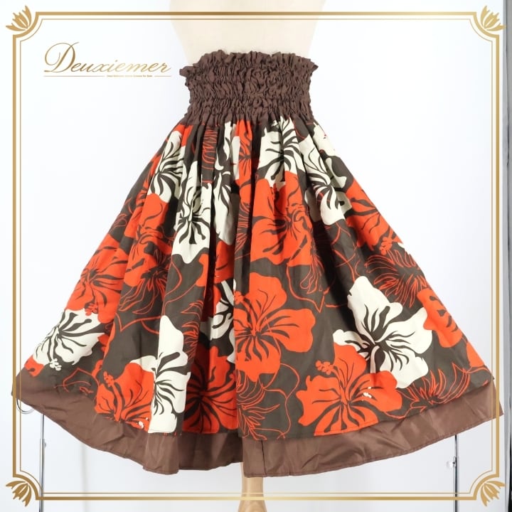 #フラダンス #パウスカート #衣装 #ハイビスカス柄 #ブラウン #ウエストゴム #ダンス衣装 #フラダンス衣装 #おしゃれ #かわいい #ポリエステル #女性用トルソー #舞台衣装 #スカート #ハワイアン #ダンス #フラ #ダンススタイル #アロハ #ENUTSU