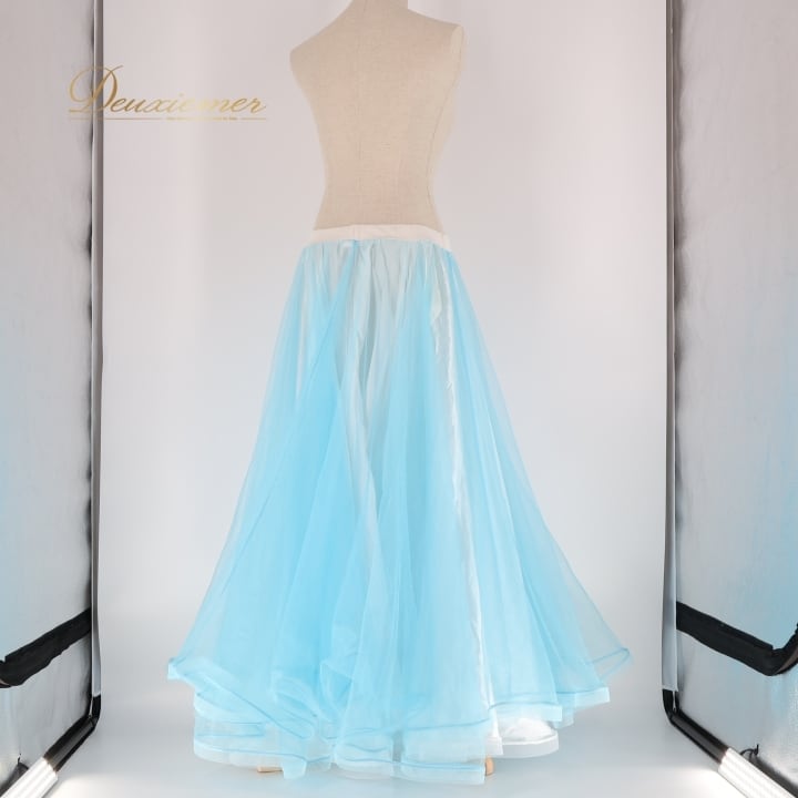ベリーダンス オリエンタル 衣装 スカート ブルー系 チュール 水色 白 光沢 ボリューム 爽やか レッスン 練習 かわいい ロング 華やか ダンス衣装 舞台 ホワイト系