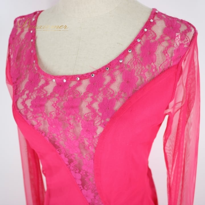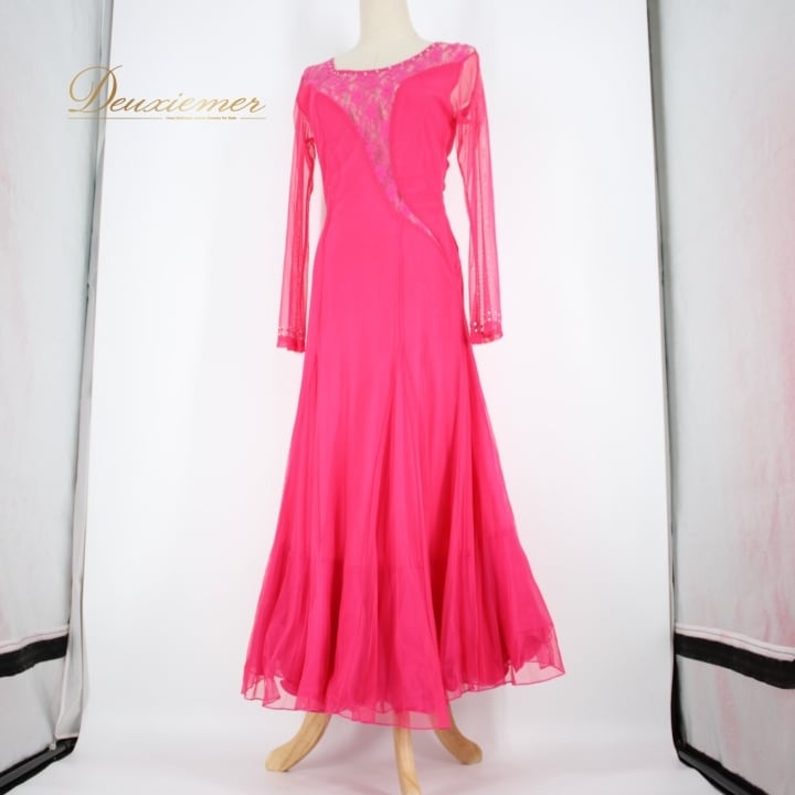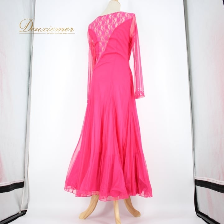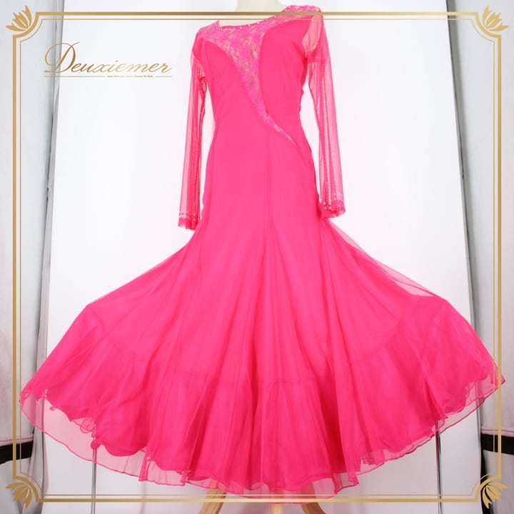 社交ダンス 衣装 スタンダード ドレス ワンピース パーティ衣装 ピンク系 prima boutique プリマブティック レース ラインストーン ビビッドピンク フォーマル 舞台衣装 ステージ映え 伸縮性 ポリエステル おしゃれ 女性用 結婚式 コスチューム ダンス衣装 エレガント セクシー サイドファスナー 体型カバー 発表会 余興