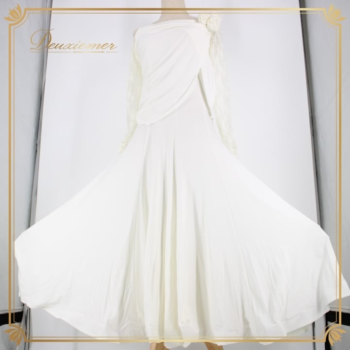 社交ダンス 衣装 スタンダード ドレス ワンピース パーティ衣装 オールシーズン 無地 シンプル 白 レース 花柄 長袖 清楚 上品 かわいい オフショルダー フレア シルエット エレガント おしゃれ 大人 女性 会場用 発表会用 衣装着用 創作発表 上品系 スペシャル デザイン コスチューム ダンスイベント